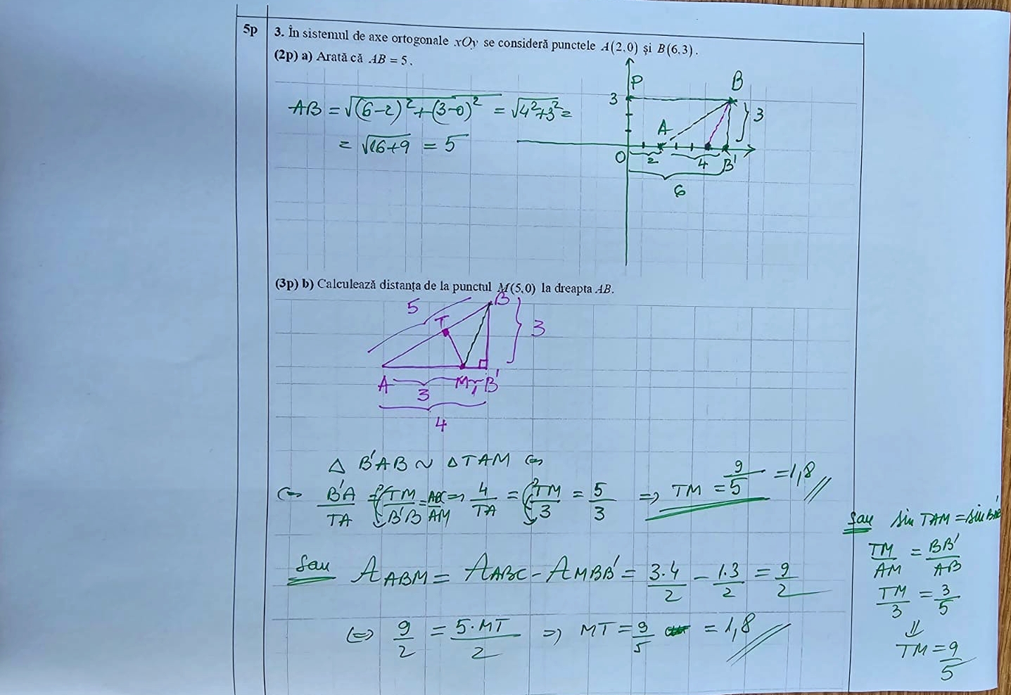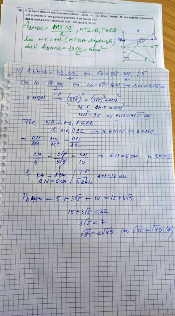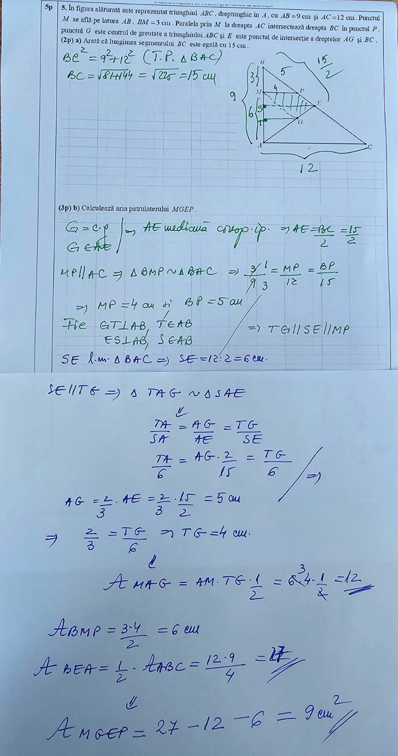 „cu observația că rezolvarea punctului b) este posibilă doar cu evidențierea unui mijloc de segment”