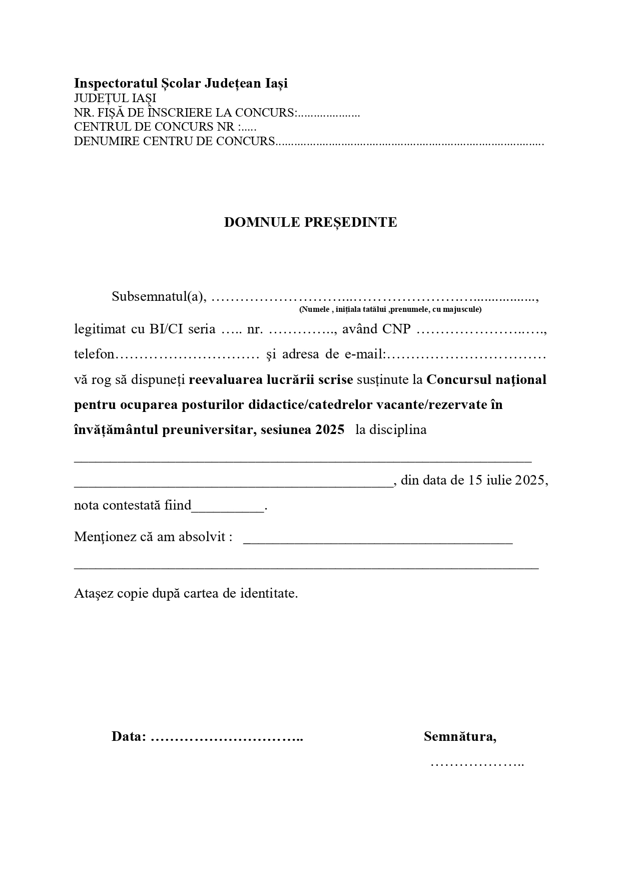 DESCARCĂ Model cerere de contestație publicat de ISJ Iași:
