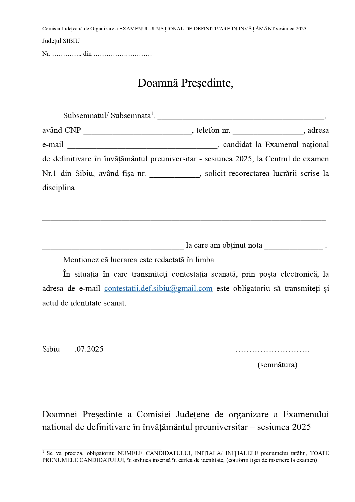 Model de cerere de contestație Inspectoratul Școlar Județean Sibiu (sursa)