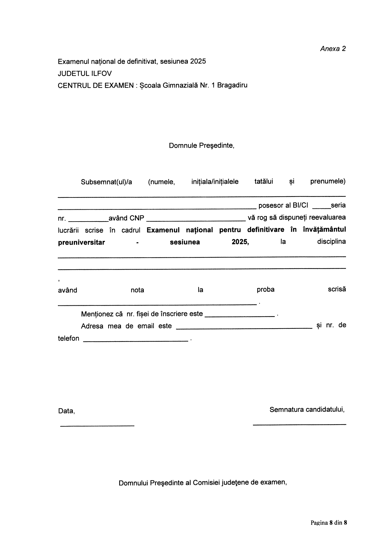 Model de cerere de contestație Definitivat 2025 – Inspectoratul Școlar Județean Ilfov (sursa)