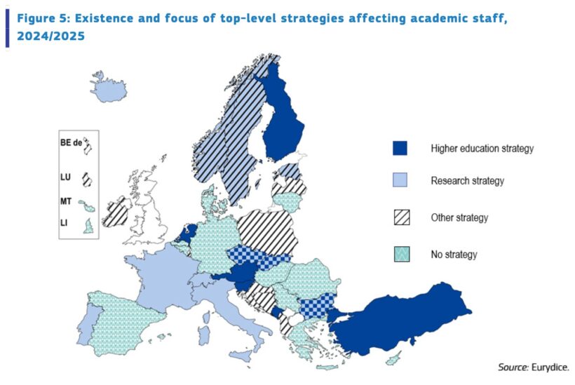 - Raportul CE privind „Personalul academic în Europa – 2025”, publicat pe platforma europeană dedicată educației Eurydice – prezintă România în rândul țărilor în care nu există nicio strategie majoră care să-i țintească pe profesorii universitari. În cazul României sunt consemnate doar reforme care au acoperit și corpul academic.