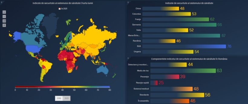 „Apropiindu-ne de finalul anului, lansăm o nouă secțiune pe portalul nostru privind indicele de securitate al sistemului de sănătate dezvoltat de cercetătorii de la Johns Hopkins University cu scopul de a măsura capacitatea țărilor lumii de a se pregăti pentru epidemii și pandemii viitoare. România se află, din păcate, pe ultimul loc în UE în privința acestui indice, respectiv pe locul 57 din lume”, anunță aceștia într-o postare pe Facebook.