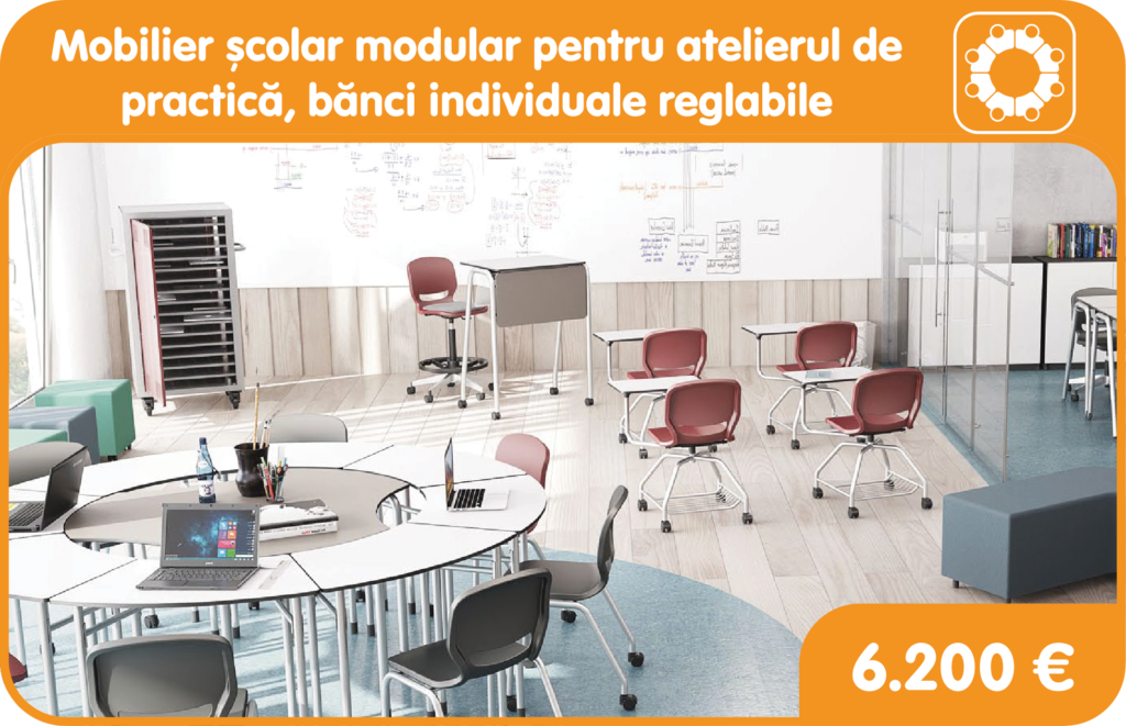 Înlocuirea mobilierului vechi cu unul nou oferă posibilitatea de a moderniza sălile de clasă și laboratoarele școlare. Organizarea spațiilor de învățare prin îmbinarea echipamentele tehnologice are ca scop crearea unor medii de predare și învățare personalizate, flexibile, multifuncționale.