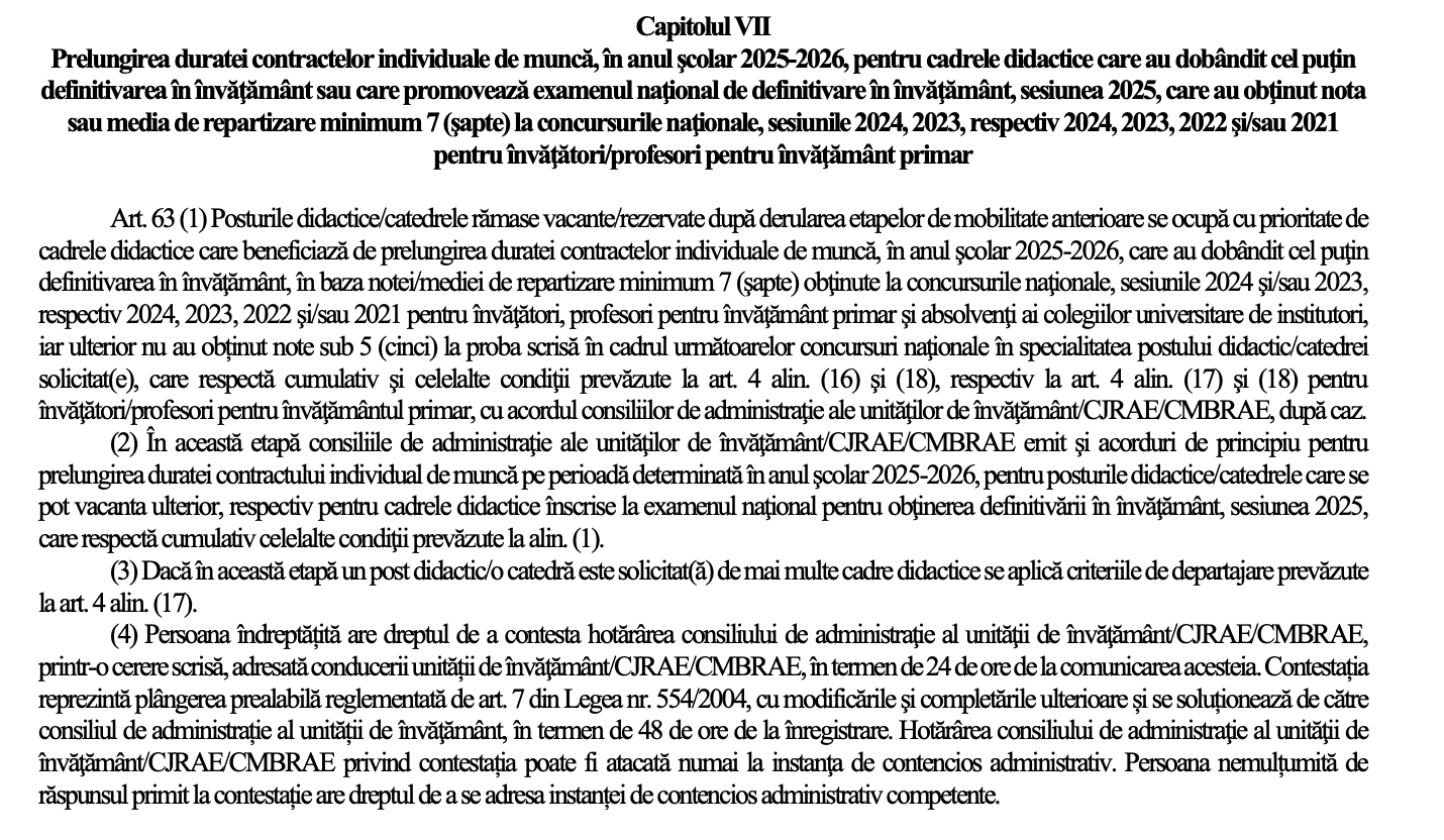 Iată ce prevăd art. 24 și art. 63 din Metodologia-cadru de mobilitate pentru anul școlar 2025-2026