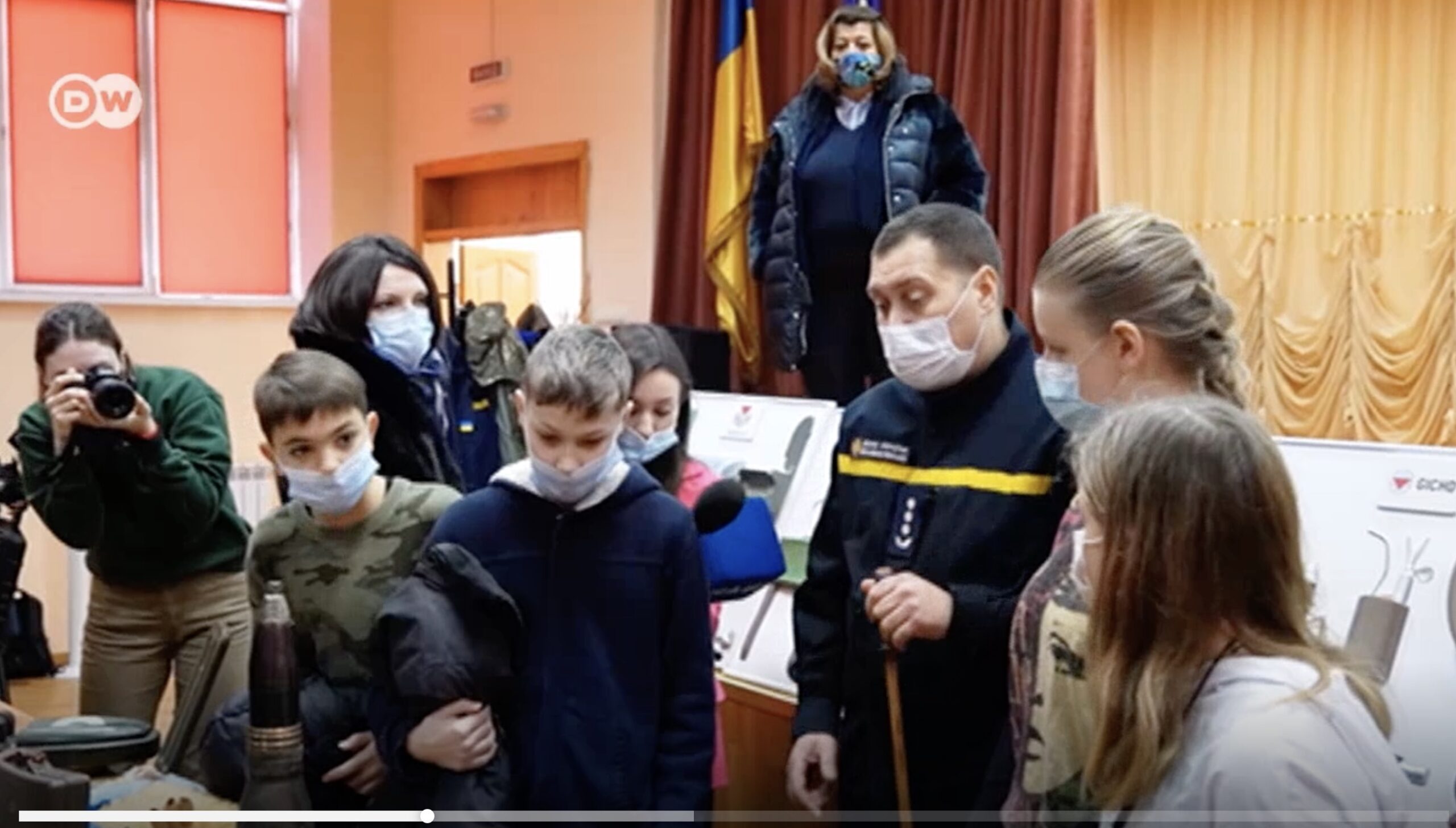 Pericolul unui atac din partea Rusiei determină acum școlile din Ucraina să-i pregătească pe copii pentru ce este mai rău, potrivit unui reportaj video Deutsche Welle.