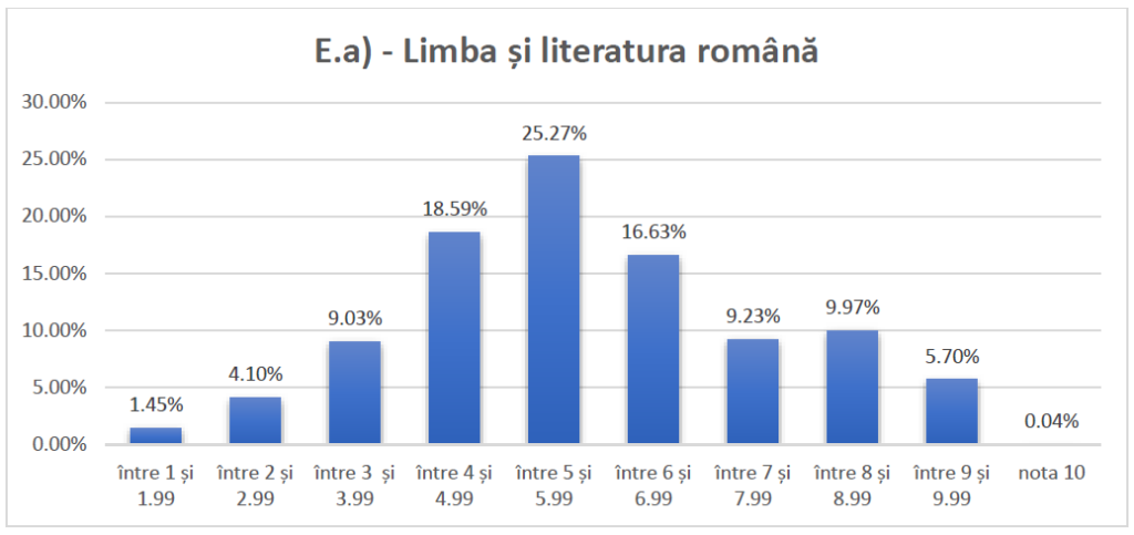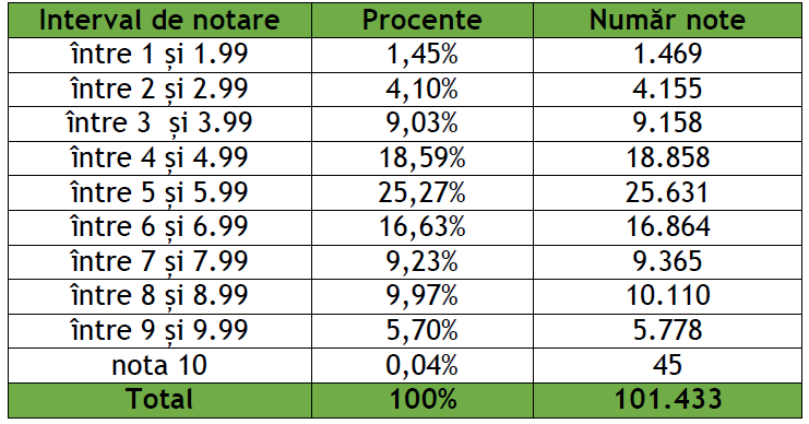 Rezultate la nivel național, pe tranșe de note: