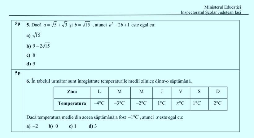 Barem Matematică – Simulare Evaluare Națională 2023, județul Iași: