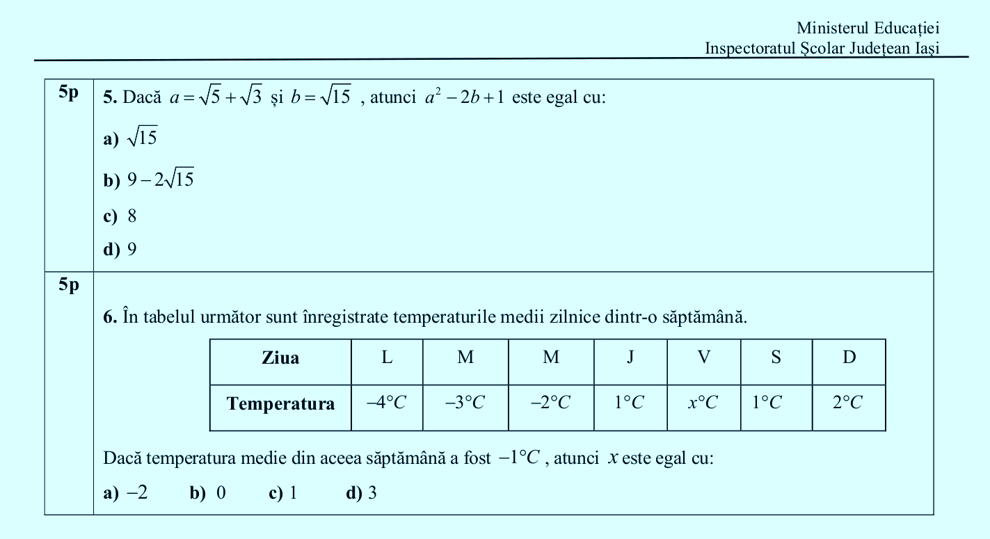 Foto: captură – subiecte matematică – Simulare Evaluare Națională Iași