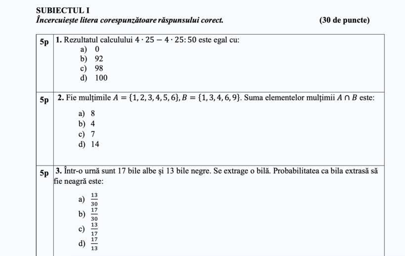 Vezi aici subiecte și bareme de la simularea EN VIII 2024 – Matematică.