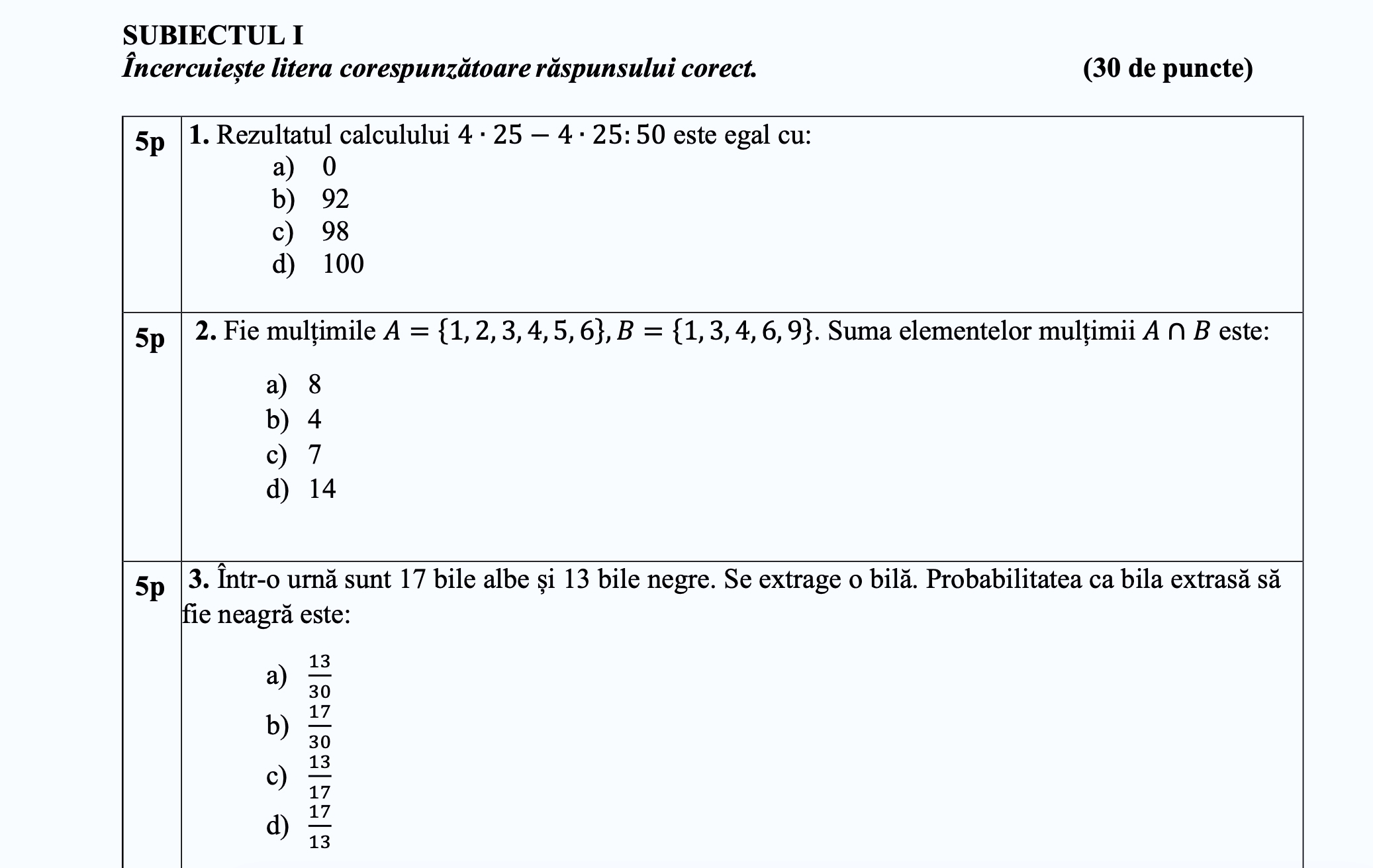 Barem Matematică – simulare Evaluare Națională 2026, Cluj