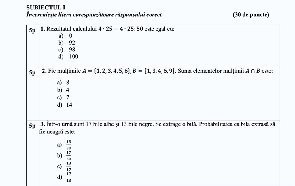 Barem Matematică – simulare Evaluare Națională 2026, Cluj