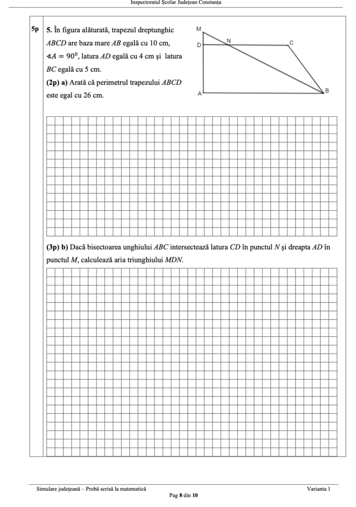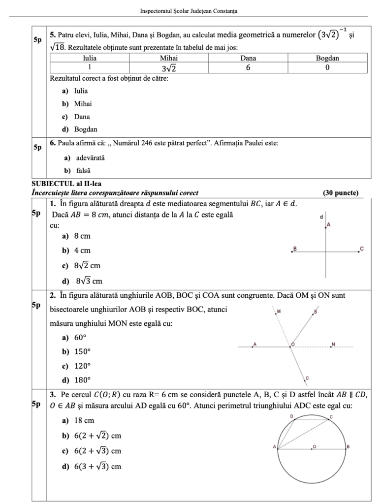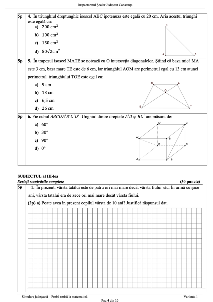 Subiectele de la simularea județeană din Constanța, proba de matematică