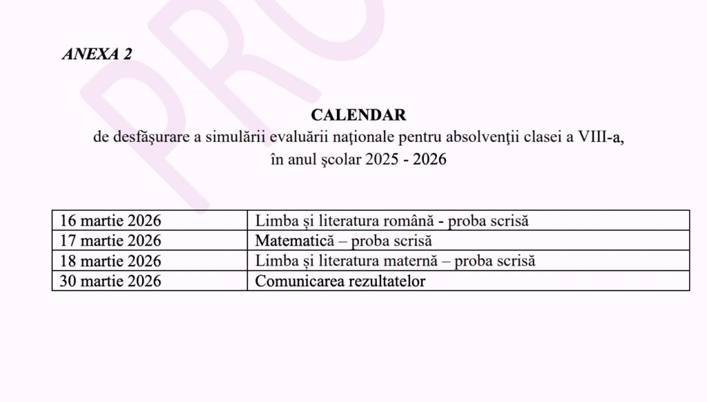 Comunicarea rezultatelor are loc pe 30 martie 2026, potrivit proiectului.