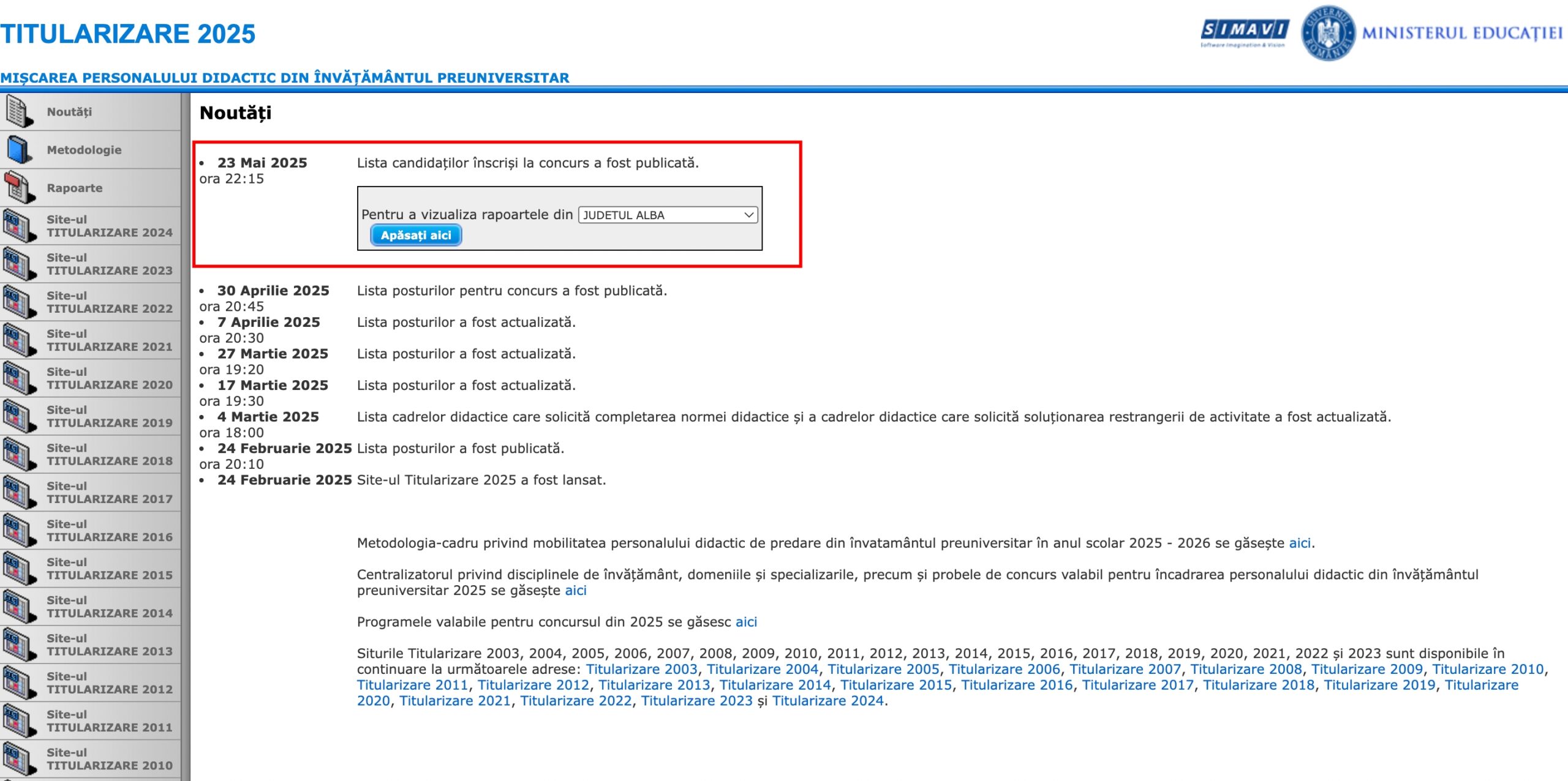 Vineri, 23 mai, site-ul Titularizare 2025 a fost actualizat cu listele candidaților înscriși la concursul național. Tot vineri, inspectoratele școlare au publicat și graficul privind susținerea probelor practice/orale și a inspecțiilor speciale la clasă.