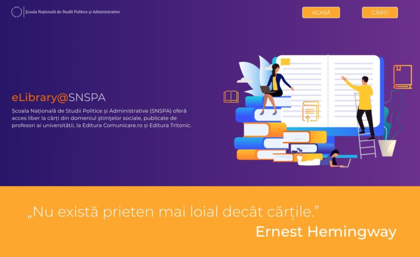 „Cu sprijinul celor două edituri, care au manifestat solidaritate în această situație dificilă, generată de pandemia de Covid-19, SNSPA a deschis o bibliotecă virtuală, eLibrary.snspa.ro, unde sunt puse la dispoziţie, spre citire şi descărcare, pe perioada stării de urgenţă, numeroase lucrări din domenii precum: comunicare, relații publice, management, psihologie socială, relații internaționale și geopolitică, economie, social media, sfera publică europeană sau mass-media„, anunță instituția de învățământ superior, într-un comunicat remis Edupedu.ro.