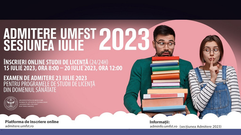 Pentru informații suplimentare privind Admiterea 2023 la Universitatea de Medicină, Farmacie, Științe și Tehnologie „George Emil Palade” din Târgu Mureș accesați https://adminfo.umfst.ro/, iar pentru înscriere accesați https://admitere.umfst.ro/.
