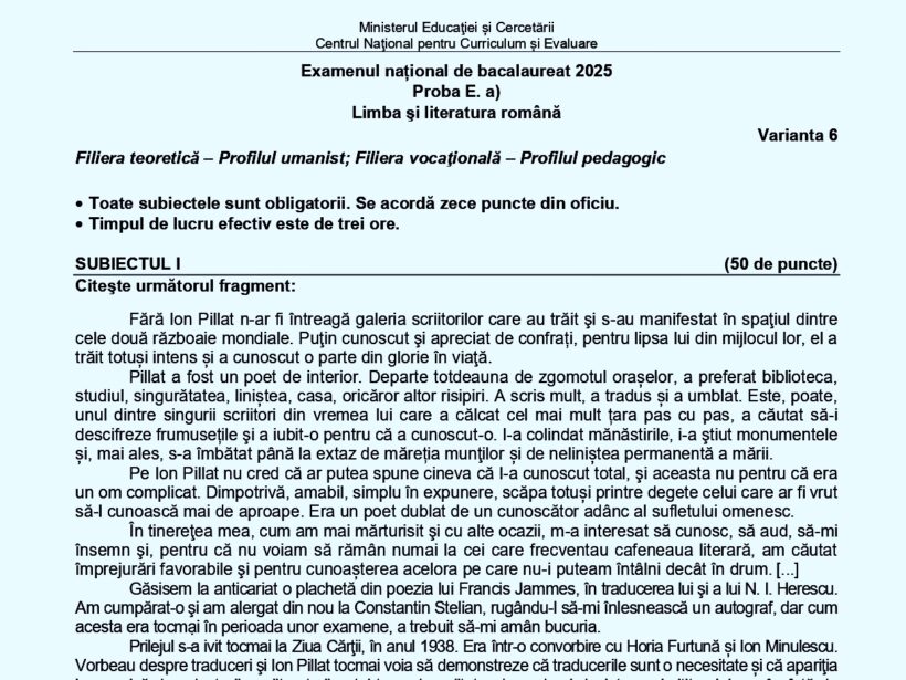 22 mai 2025 – Limba și literatura română – proba E)a) – proba scrisă