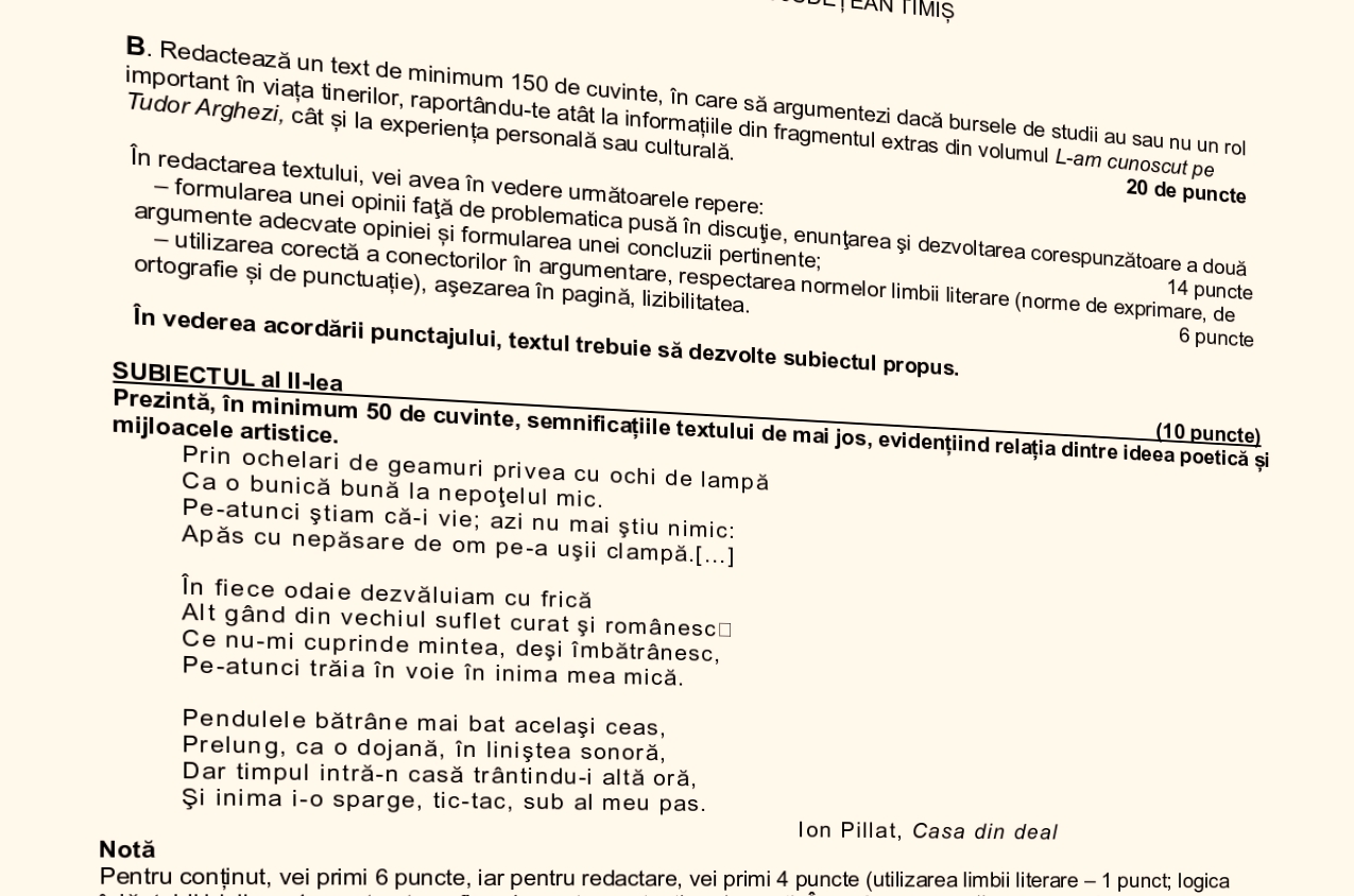 DOCUMENT DESCARCĂ Barem simulare BAC 2026 – Uman, decembrie, județul Timiș – Limba și literatura română: