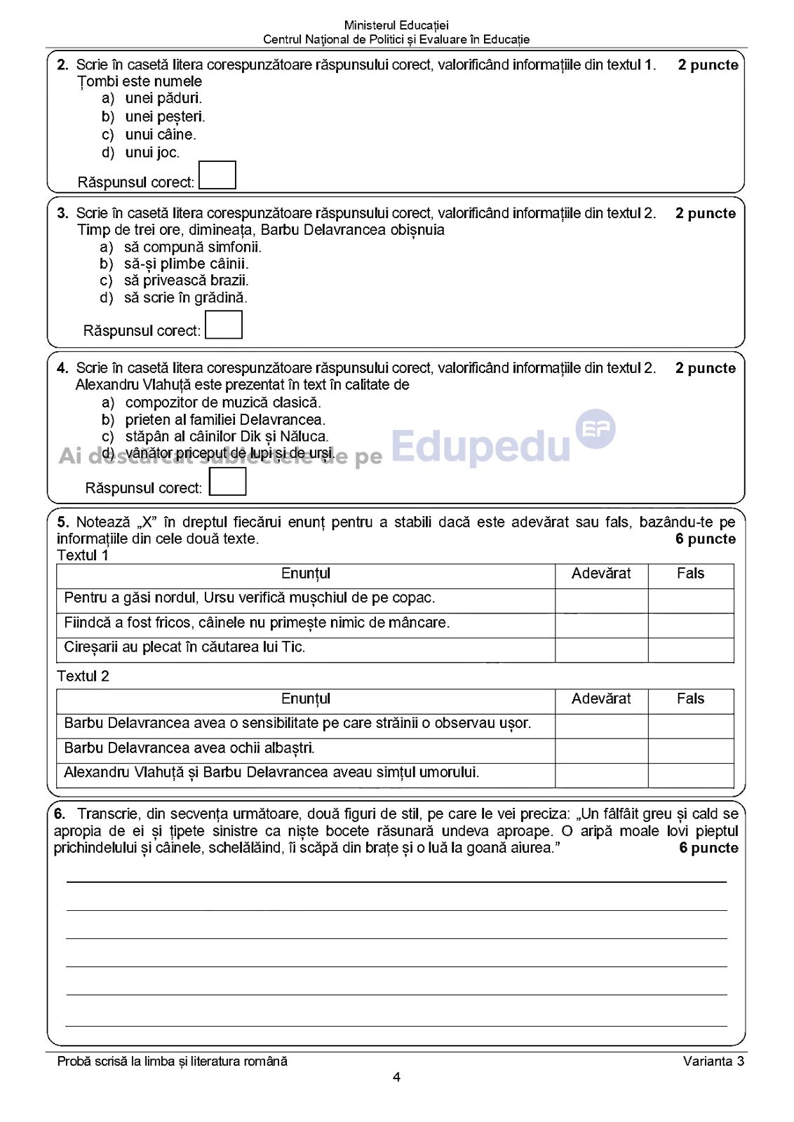 2. Jenant, aceleași subiecte ca în 2023. Cei care emit subiectele vor fi evaluați, ca merita? Luați salarii degeaba. Nu vreți decât sa creați panica printre elevi, și sa destabilizati aceasta generație. Rușine
