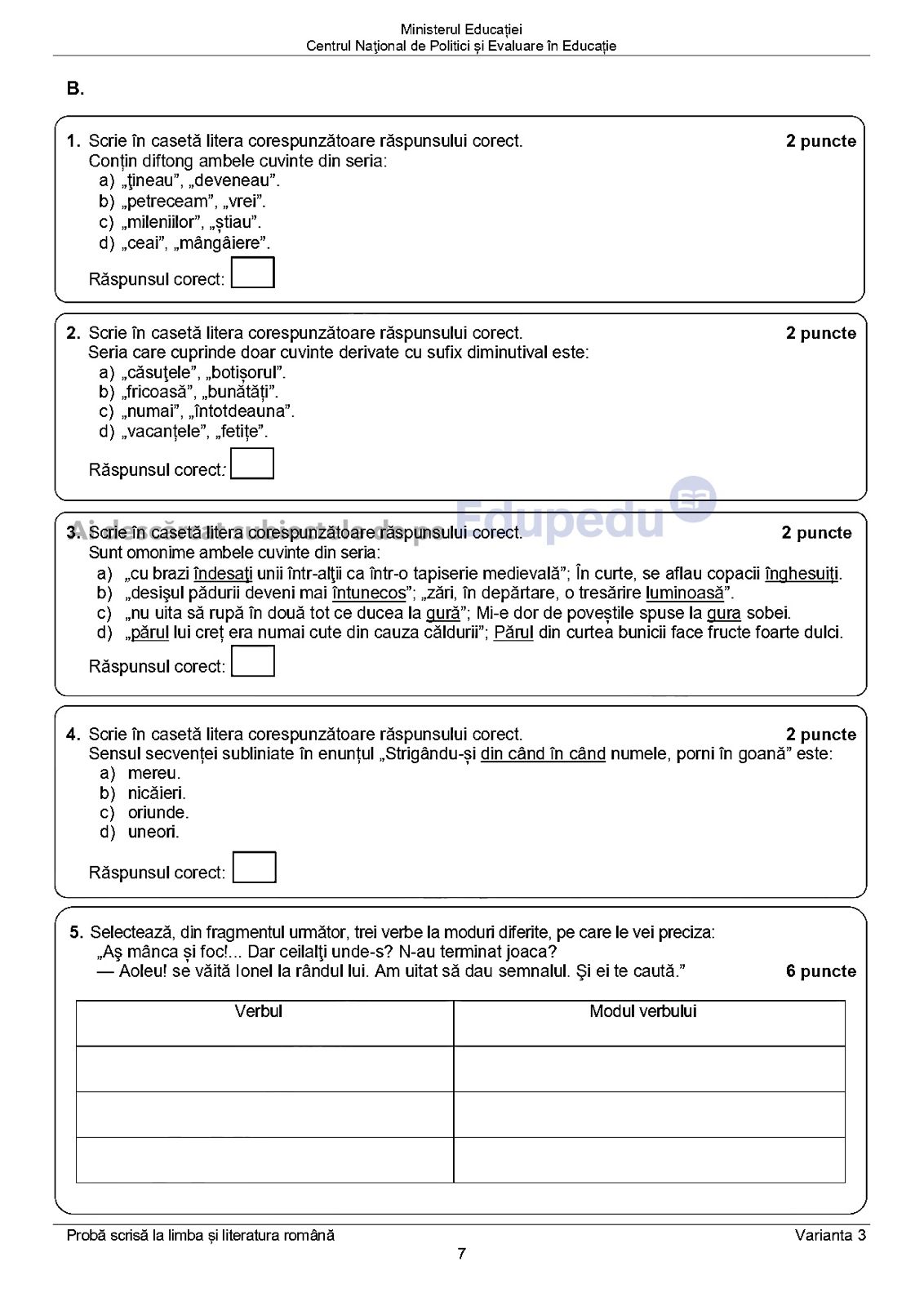 5. Evaluarea se face pe ceea ce s-a predat in cursul anului școlar. textele au fost bine alese. Felicitări comisiei ! Toți elevii ar trebui să obțină note mari.