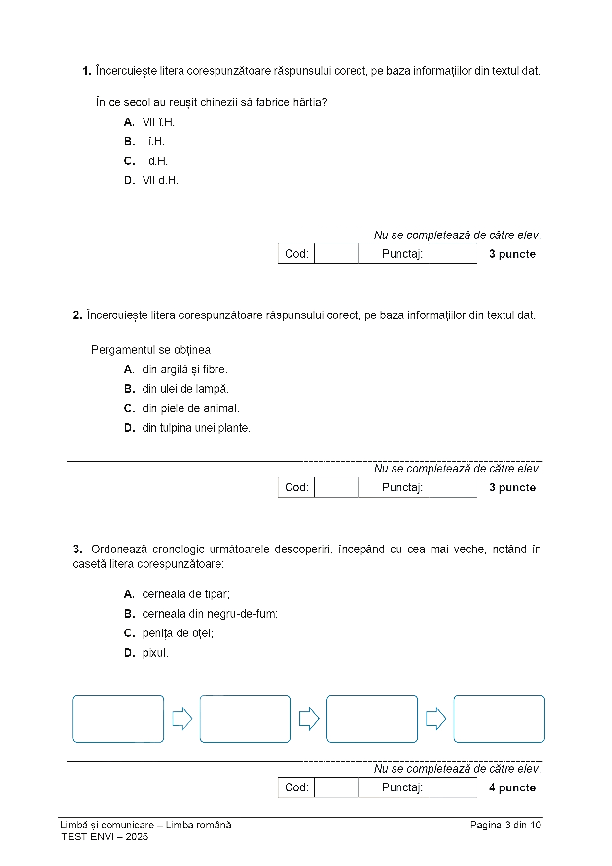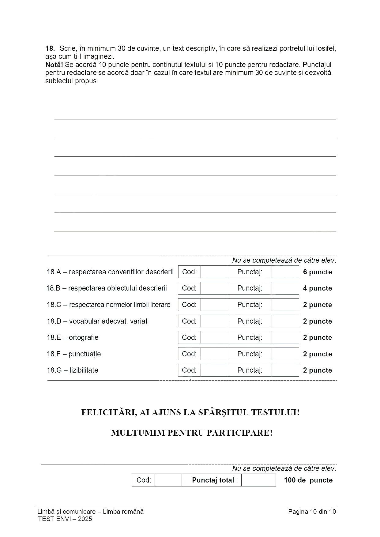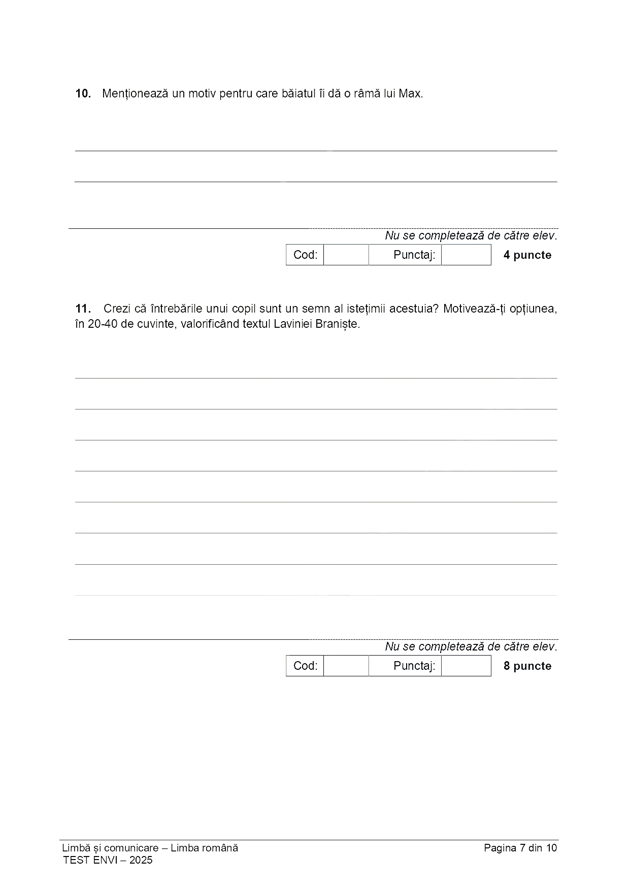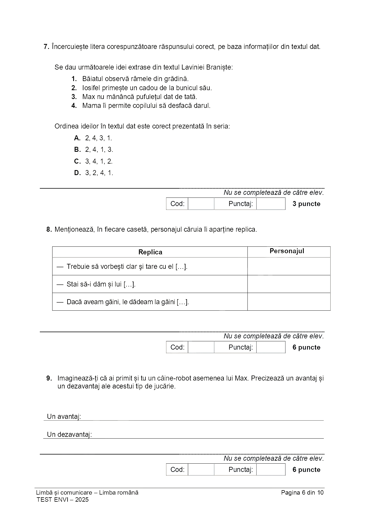 Subiect Limba română