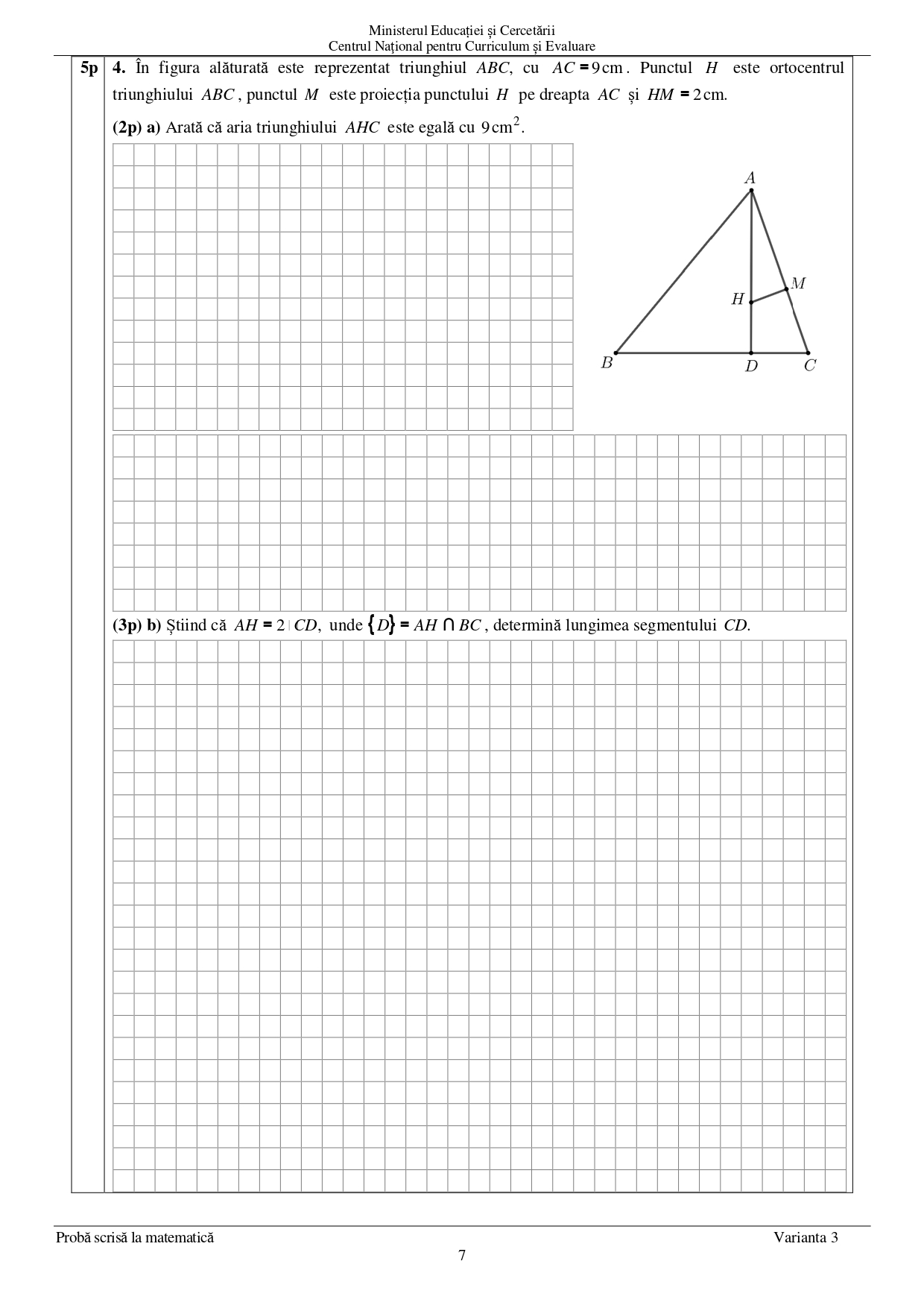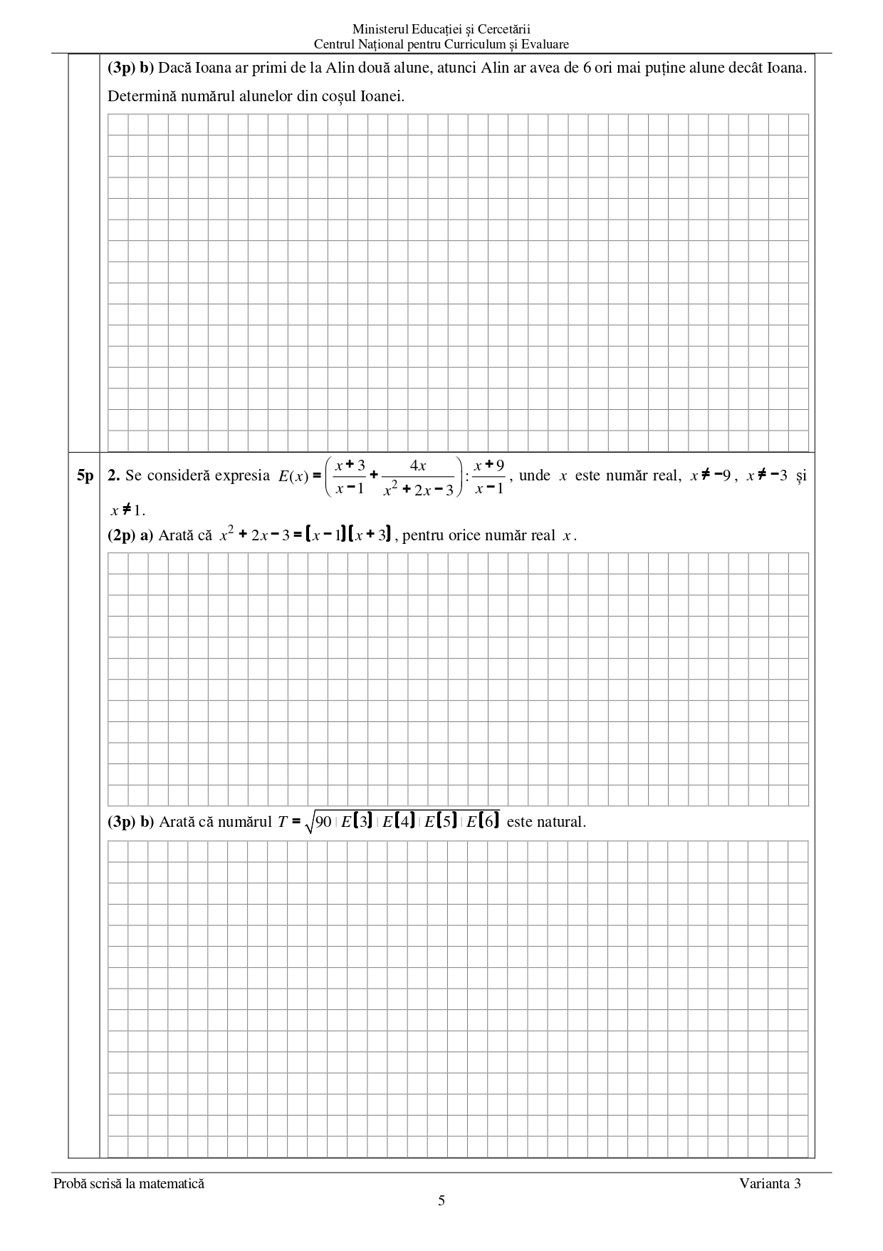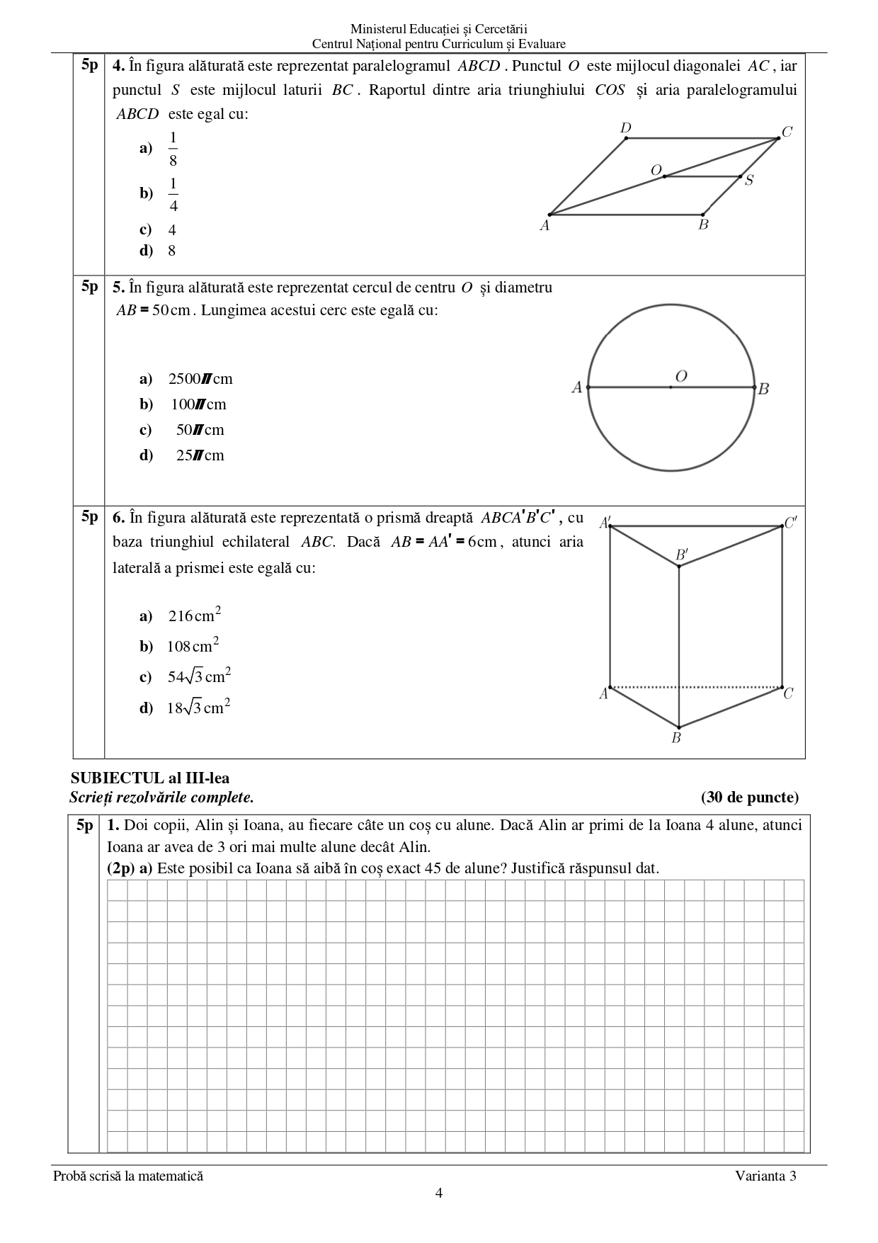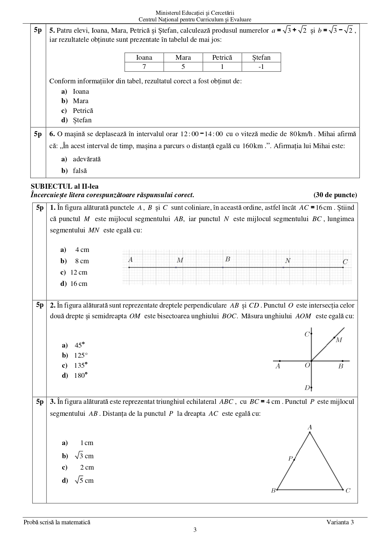 3 iulie 2025 Matematică — proba scrisă