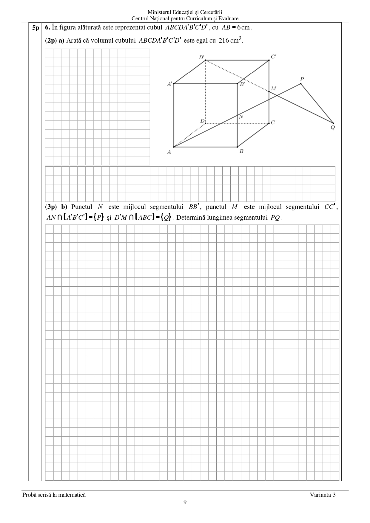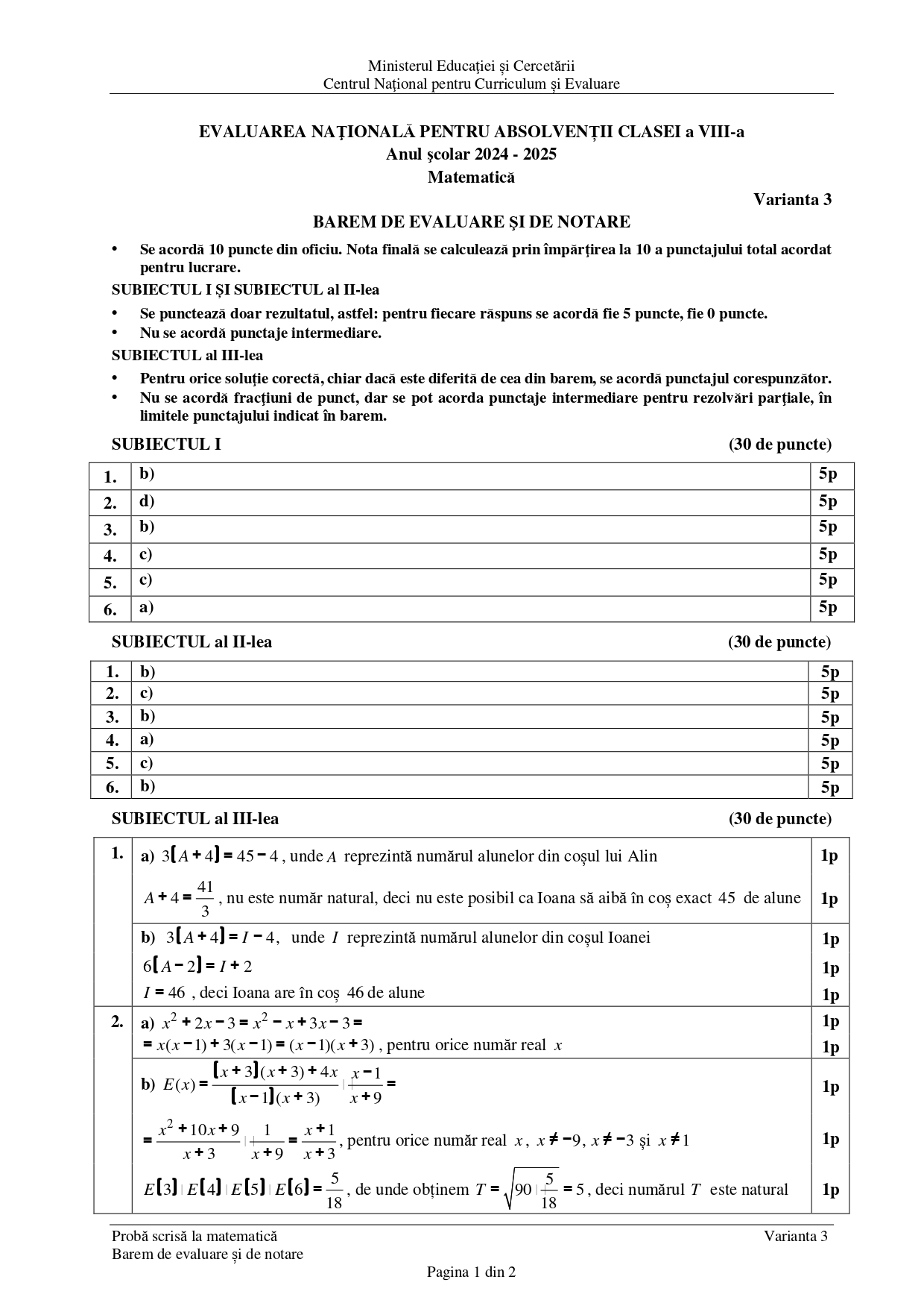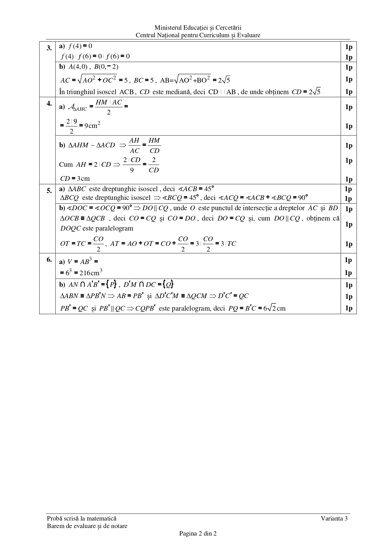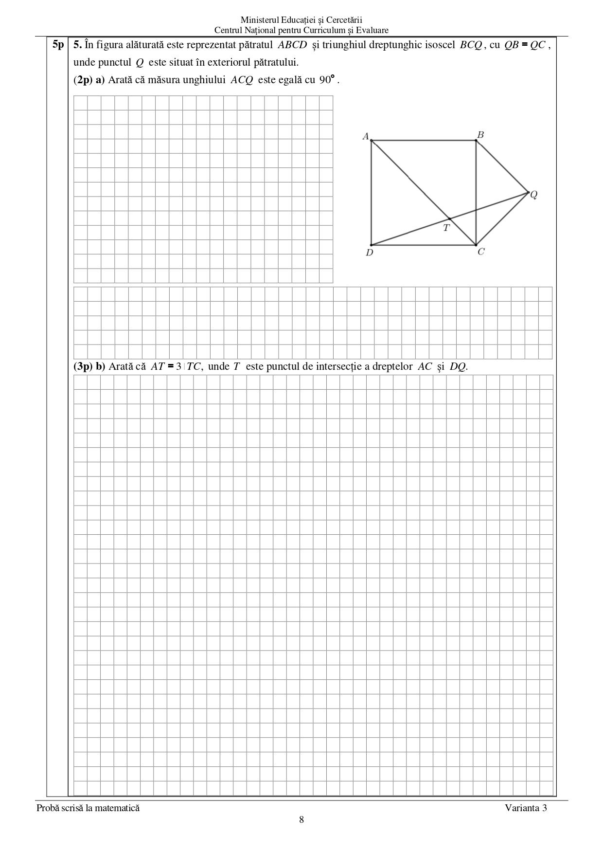 3 iulie 2025 Matematică — proba scrisă