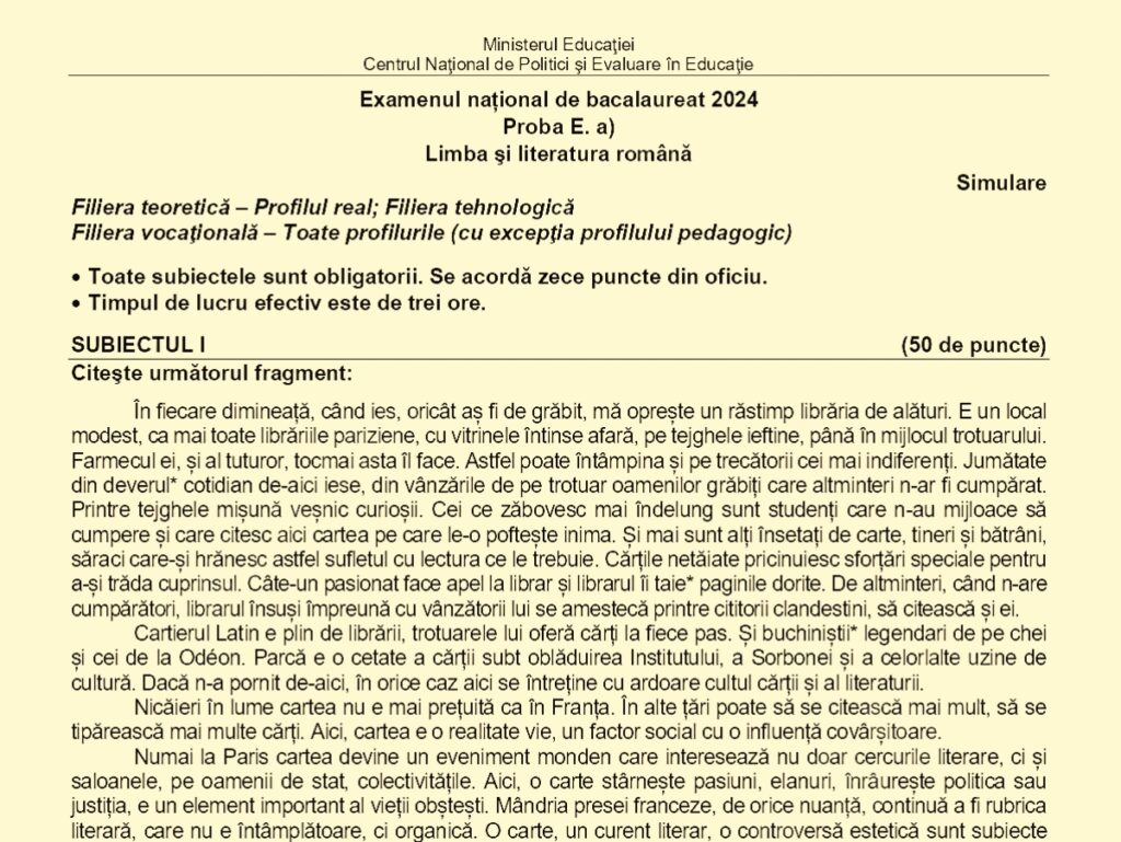 - Baremele de corectare și notare pentru Limba română, simularea examenului de Bacalaureat 2024, publicate de Ministerul Educației
