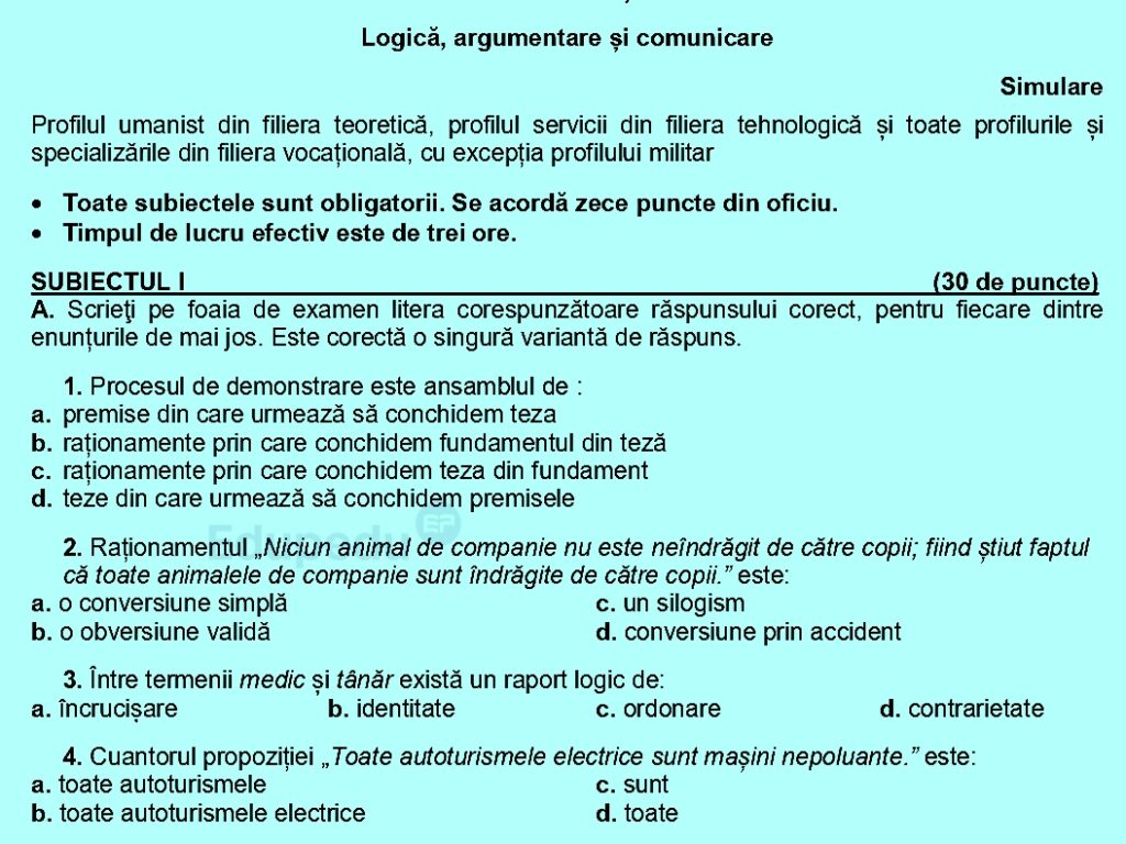 Elevii de clasa a XII-a au dat miercuri, 6 martie, simularea probei la alegere a profilului și specializării. Subiectele au fost obținute de Edupedu.ro și publicate după încheierea probei.