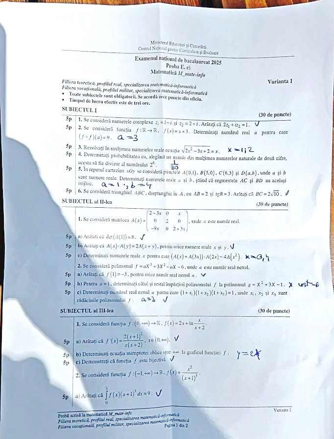 Absolvenții de liceu au susținut miercuri, 11 iunie, proba obligatorie a profilului din cadrul examenului național de Bacalaureat 2025. Vezi mai jos, în articol, ce subiecte au primit candidații de la profilul real, specializarea matematică-informatică.