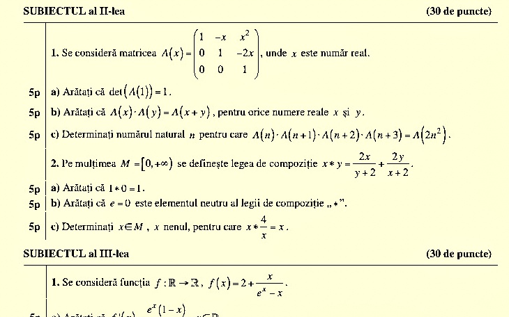 Structura subiectelor este aceeași ca în anii trecuți – câte trei subiecte cu câte șase probleme/exerciții, fiecare dintre acestea notate cu câte 5 puncte.