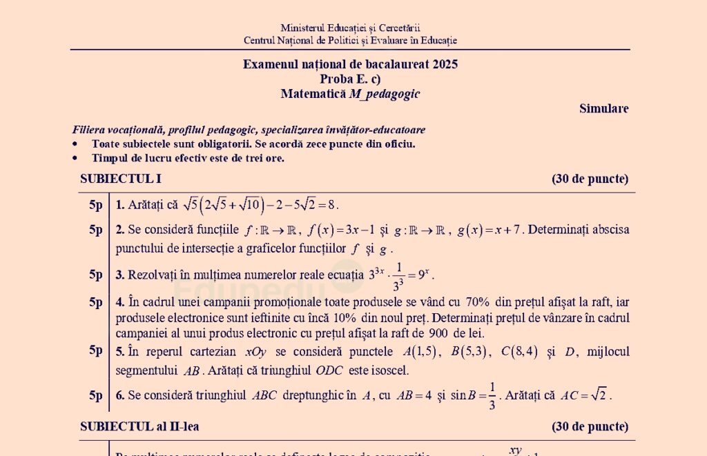 - Subiecte Matematică, profil tehnologic – simulare BAC 2025