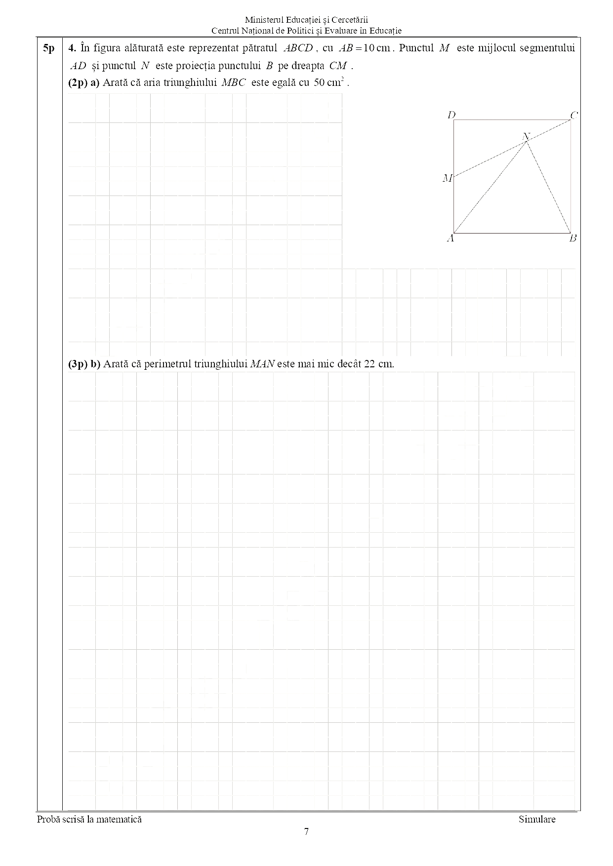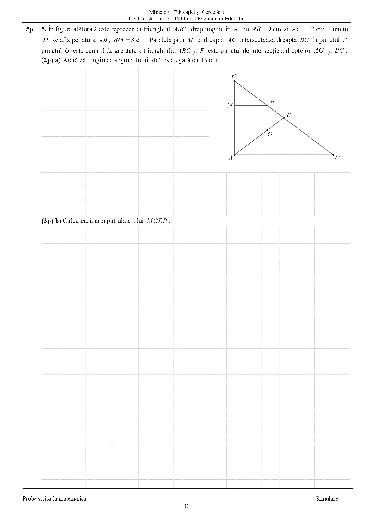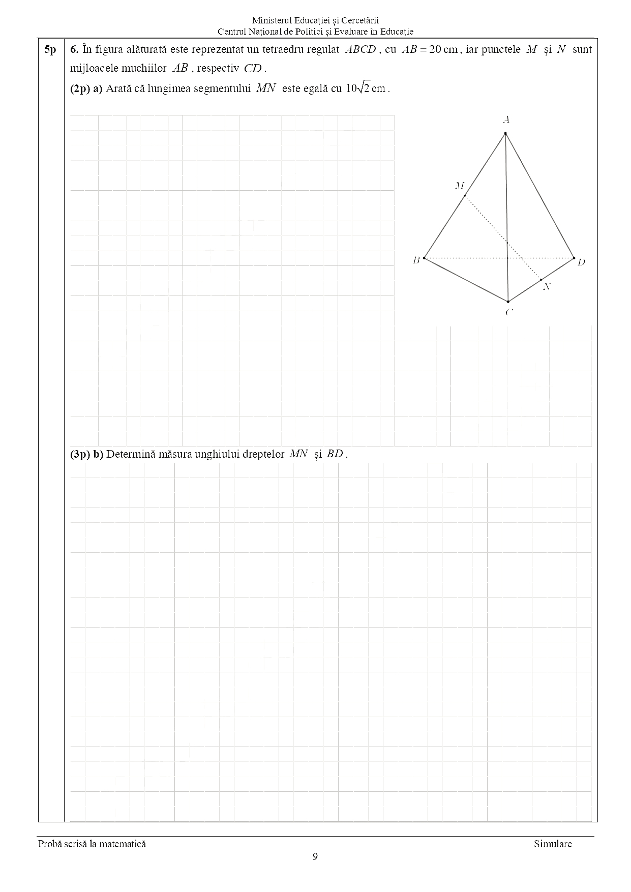 Subiectul al II-lea a fost integral grilă și majoritatea problemelor au fost de geometrie. Iar la subiectul al III-lea itemii au solicitat scrierea pe foaia de examen a rezolvărilor complete. La problema de geometrie în spațiu, ultimul item, elevii au avut un tetraedru regulat.
