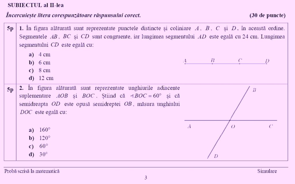 Elevii de clasa a VIII-a au primit 18 exerciții și probleme la simularea probei de Matematică de la Evaluarea Națională 2025, potrivit subiectelor consultate de Edupedu.ro. La primul subiect au fost 5 itemi de tip grilă și unul de precizat dacă o afirmație este adevărată sau falsă.