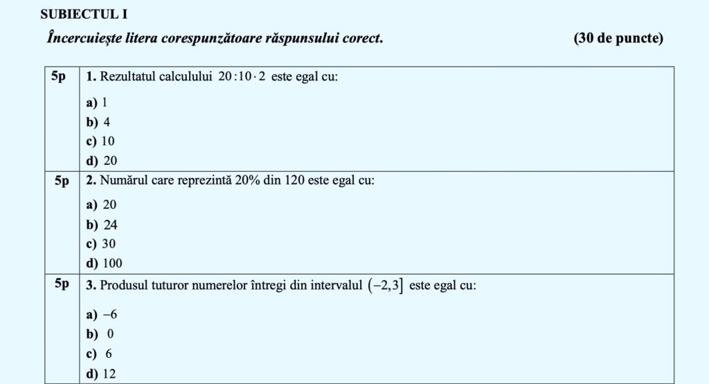 Barem matematică, simulare Evaluare Națională 2024, județul Iași