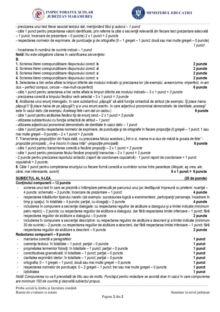 Subiect Limba română pentru școlile și secțiile cu predare în limba maghiară: