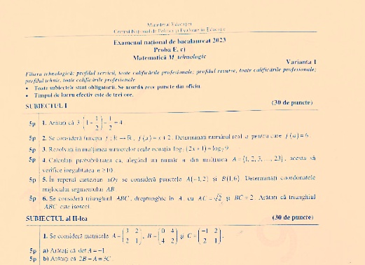 Elevii care au dat proba scrisă obligatorie a profilului la Matematică la BAC 2023, adică cei de la filiera Tehnologică, profilurile Servicii, Resurse, Tehnic etc., au avut de rezolvat varianta numărul 1 extrasă, potrivit subiectelor publicate de Ziarul Unirea.