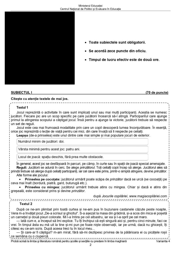 Subiectele primite de elevi la Evaluarea Națională clasa a VIII-a – limba română, pentru școlile și secțiile cu predare în limba maghiară, au fost publicate de Ministerul Educației, luni, la ora 15:30.