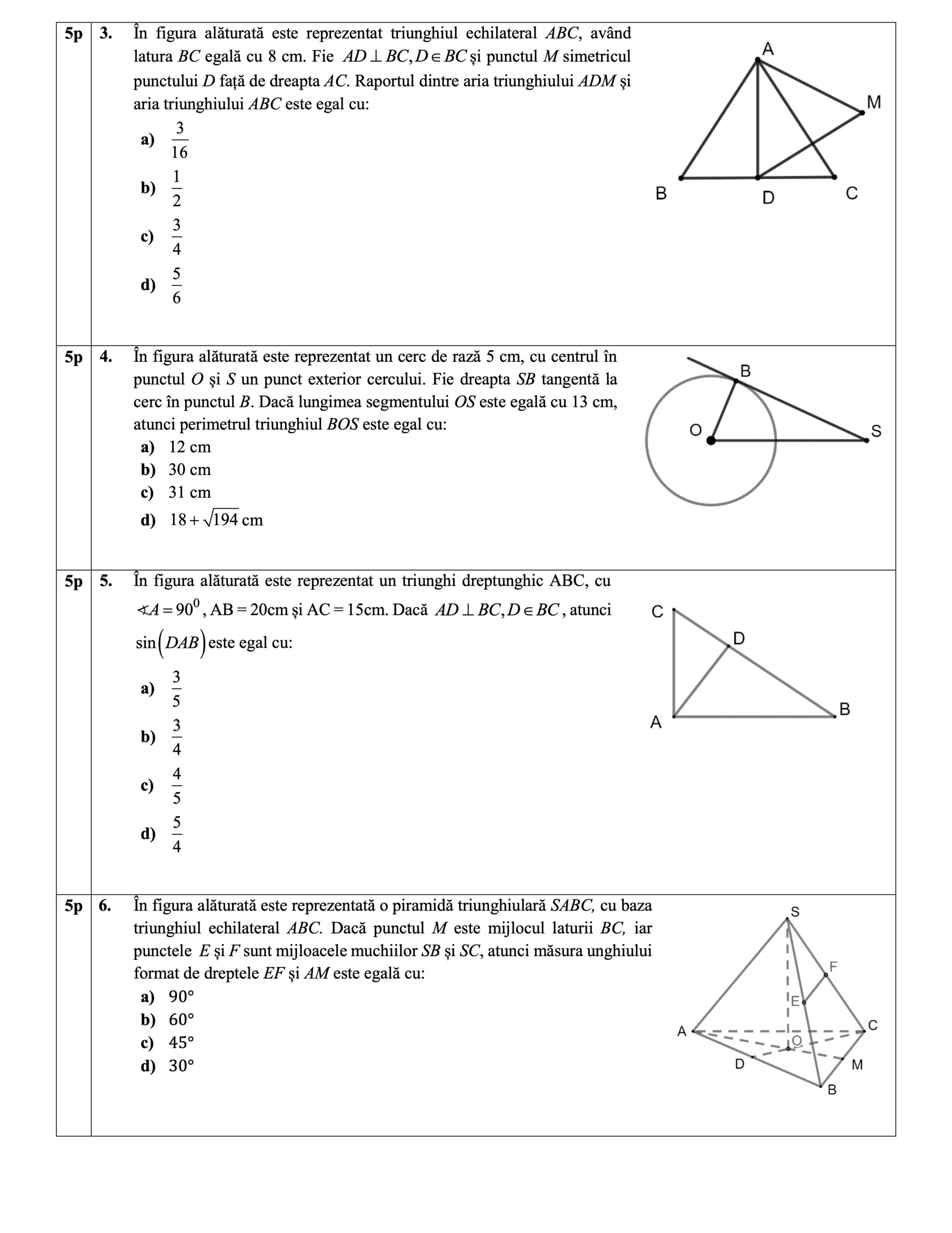 Model subiecte Matematică EN VIII 2024 Sibiu (aprilie 2024):