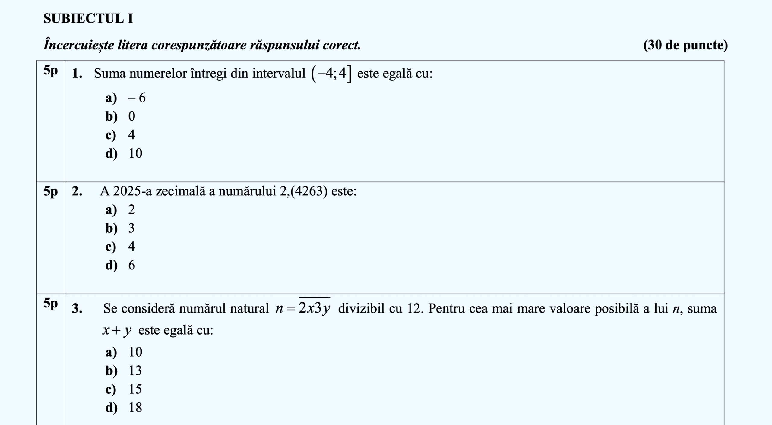Test de antrenament Matematică pentru Evaluarea Națională 2025, luna ianuarie – ISJ Sibiu