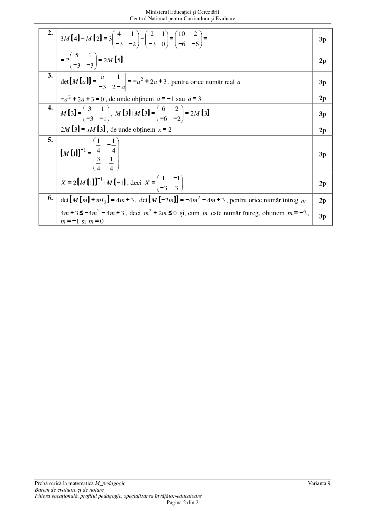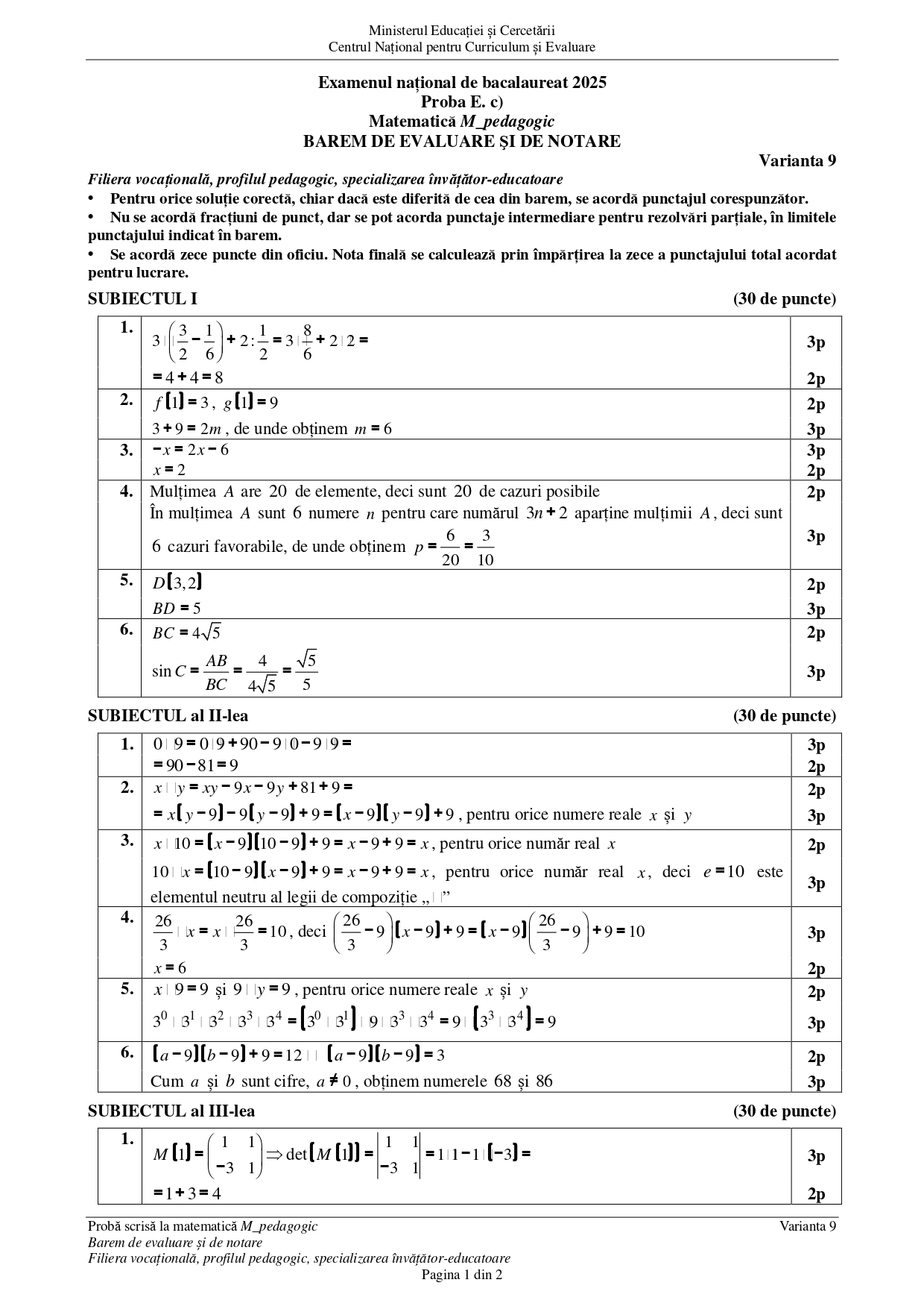 DOCUMENT DESCARCĂ Barem Matematică (Pedagogic) BAC 2025 – sesiunea august: