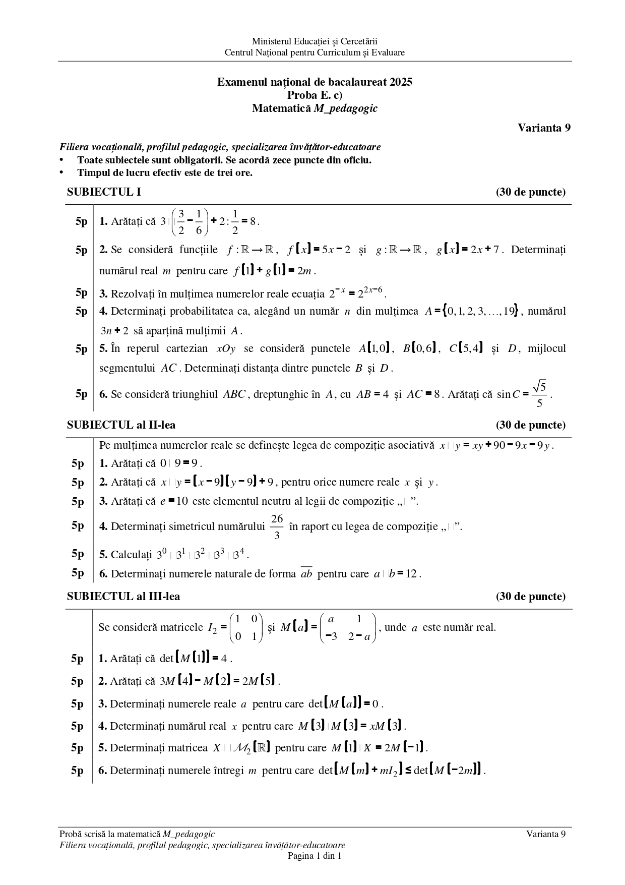 • DOCUMENT DESCARCĂ Subiect Matematică (Pedagogic) BAC 2025 – sesiunea august: