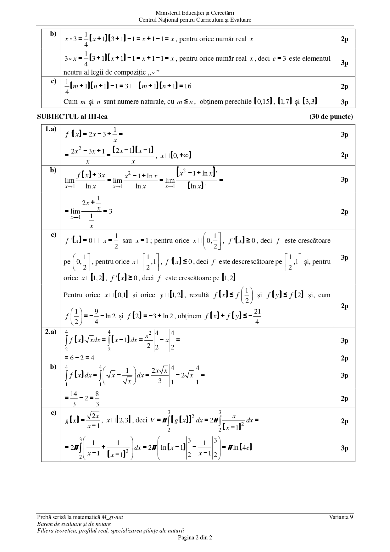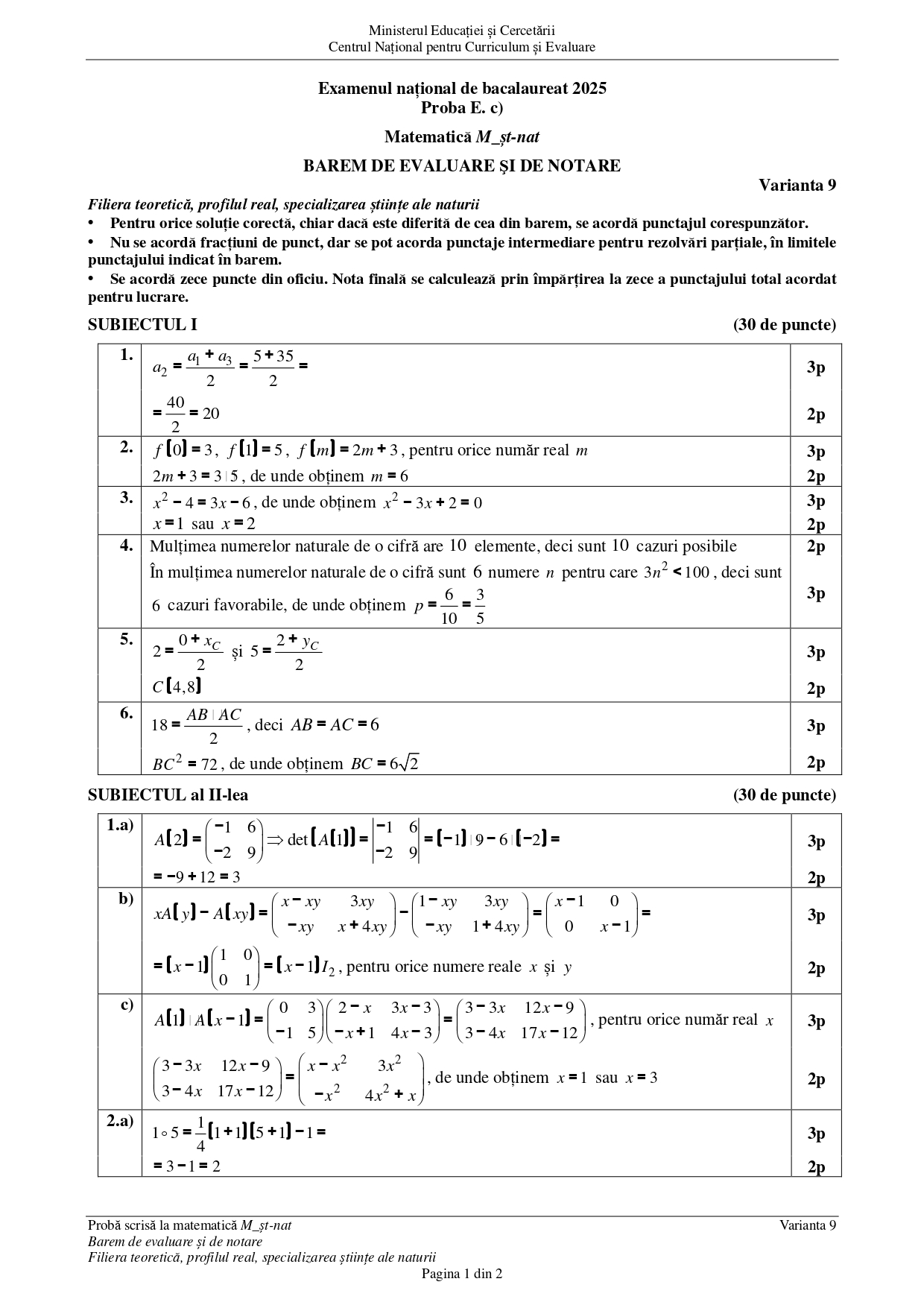 DOCUMENT DESCARCĂ Barem Matematică (Științe ale naturii) BAC 2025 – sesiunea august: