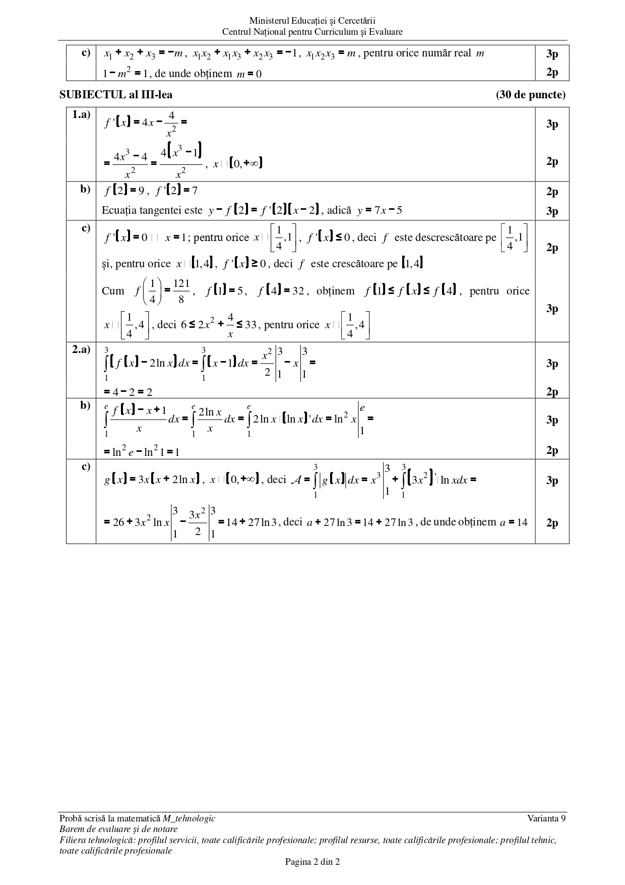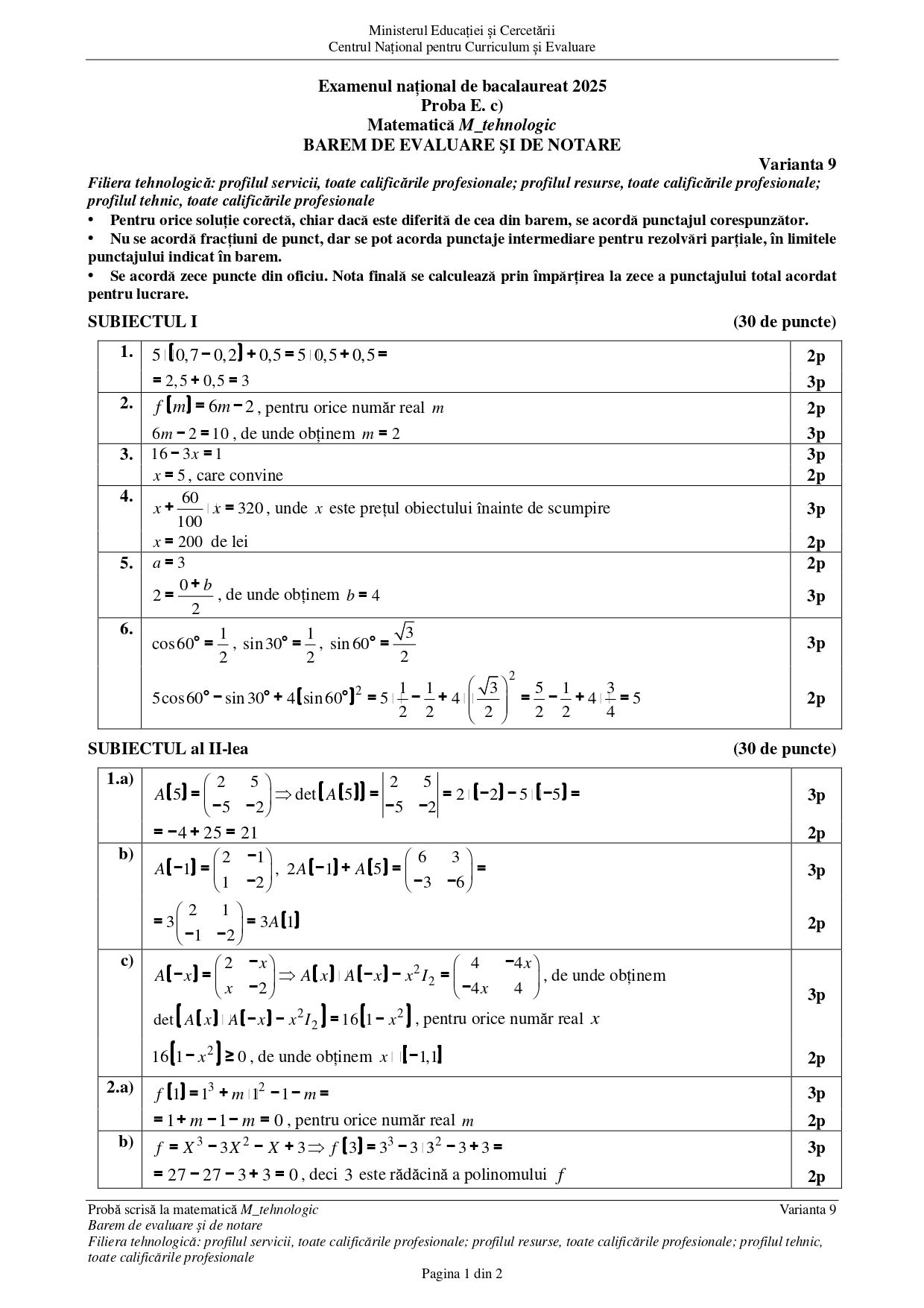 DOCUMENT DESCARCĂ Barem Matematică (Tehnologic) BAC 2025 – sesiunea august: