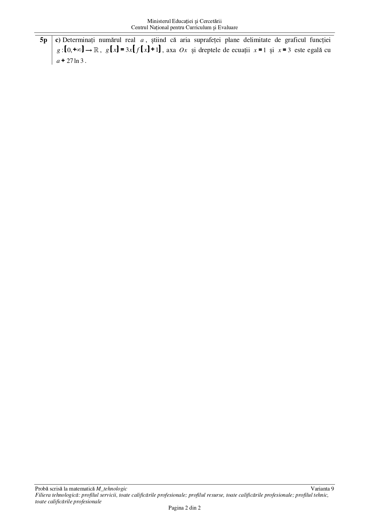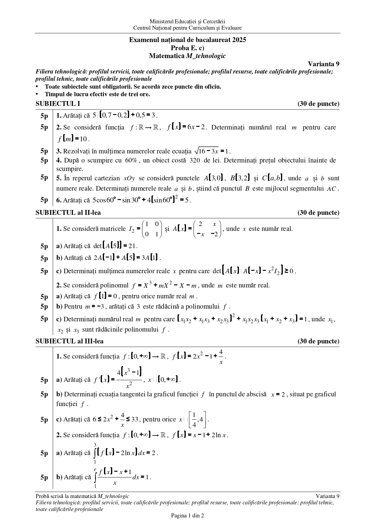 • DOCUMENT DESCARCĂ Subiect Matematică (Tehnologic) BAC 2025 – sesiunea august: