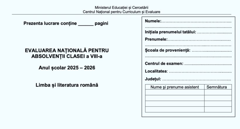 Model de subiect Limba și literatura română –  Evaluare Națională 2026