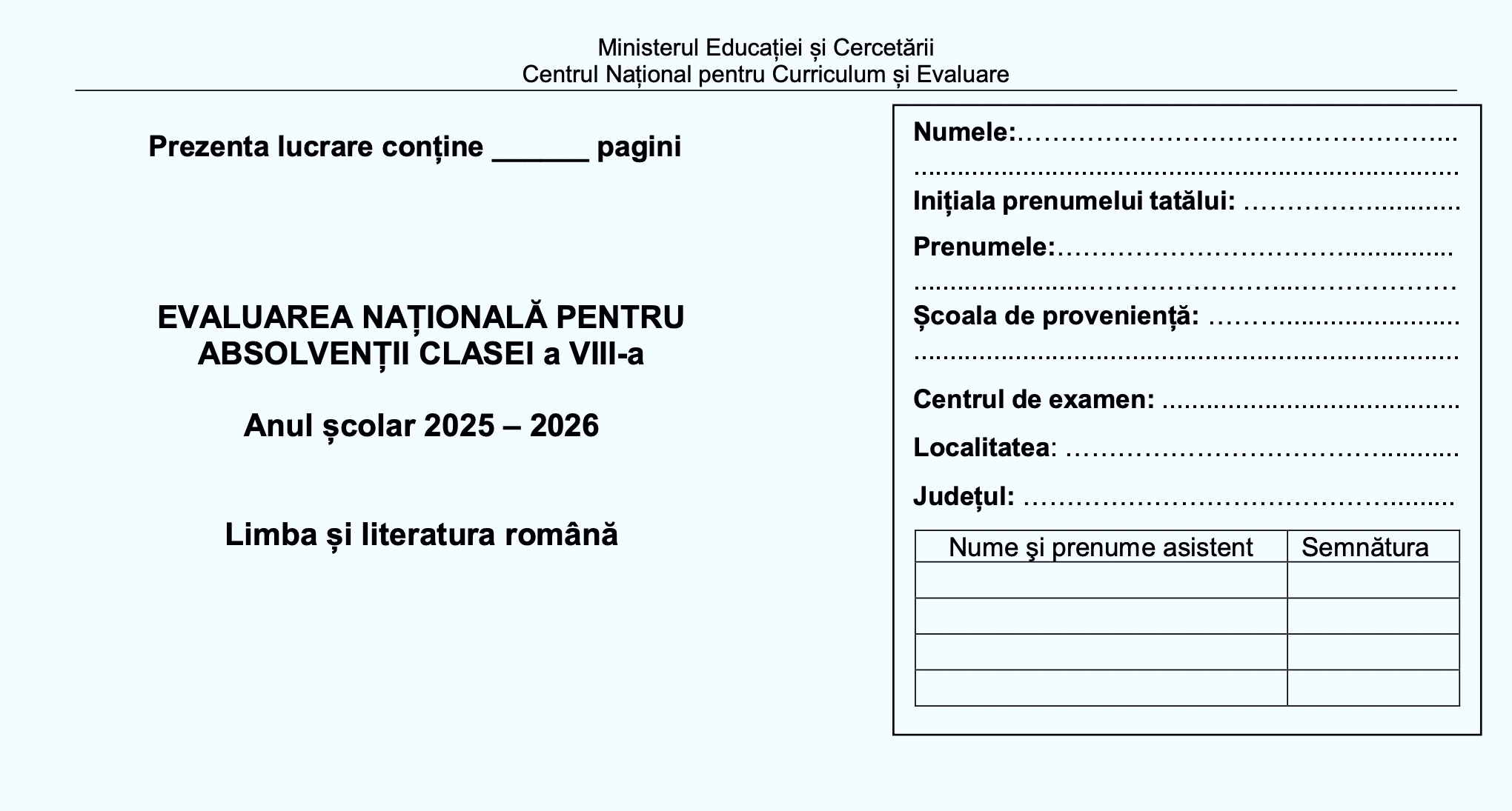 ULTIMA ORĂ Modele de subiecte Evaluarea Națională 2026, publicate de Ministerul Educației. Descarcă testele și baremele pentru Limba română, Matematică, Limba Română pentru școlile și secțiile cu predare în limba maghiară