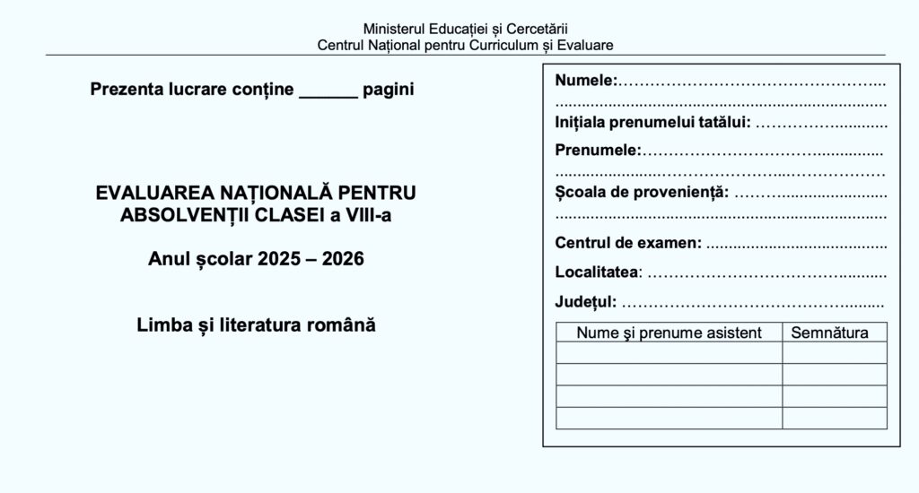 - 26 iunie 2026: Limba și literatura maternă – probă scrisă