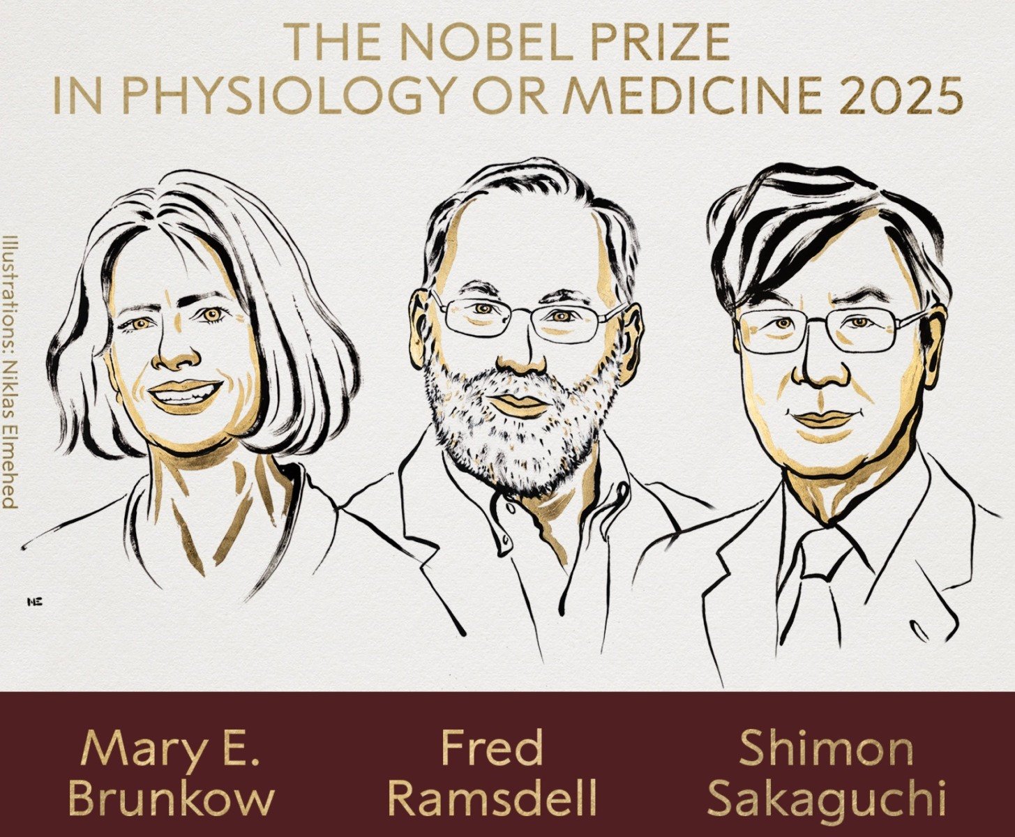 Premiul Nobel pentru Fiziologie sau Medicină din 2025 a fost acordat cercetătorilor Mary E. Brunkow (Institute for Systems Biology, Seattle, SUA), Fred Ramsdell (Sonoma Biotherapeutics, San Francisco, SUA) și Shimon Sakaguchi (Universitatea din Osaka, Japonia), „pentru descoperirile lor privind toleranța imună periferică” – mecanismul care împiedică sistemul imunitar să atace propriile țesuturi ale organismului, potrivit unui anunț al organizatorilor.