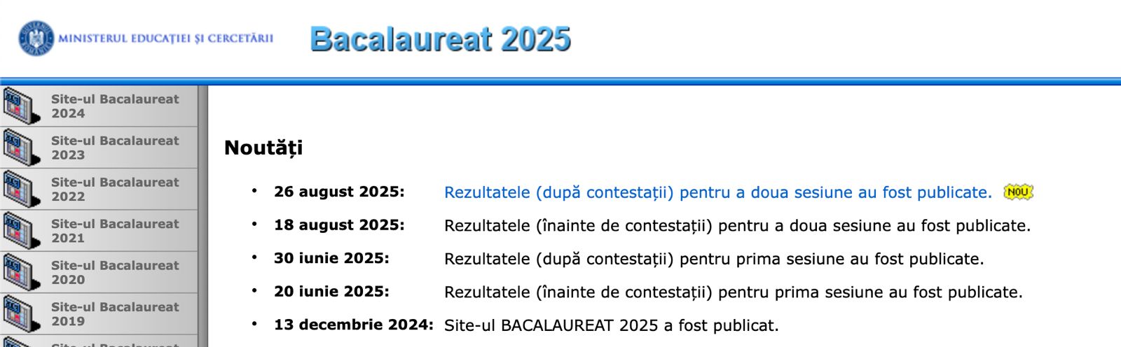 Rezultatele finale de la BAC 2025, sesiunea de toamnă, au fost publicate de Ministerul Educației la ora 11:58, pe platforma bacalaureat.edu.ro și în centrele de examen, în format anonimizat. Vezi mai jos listele cu notele și mediile obținute de candidați la probele scrise.